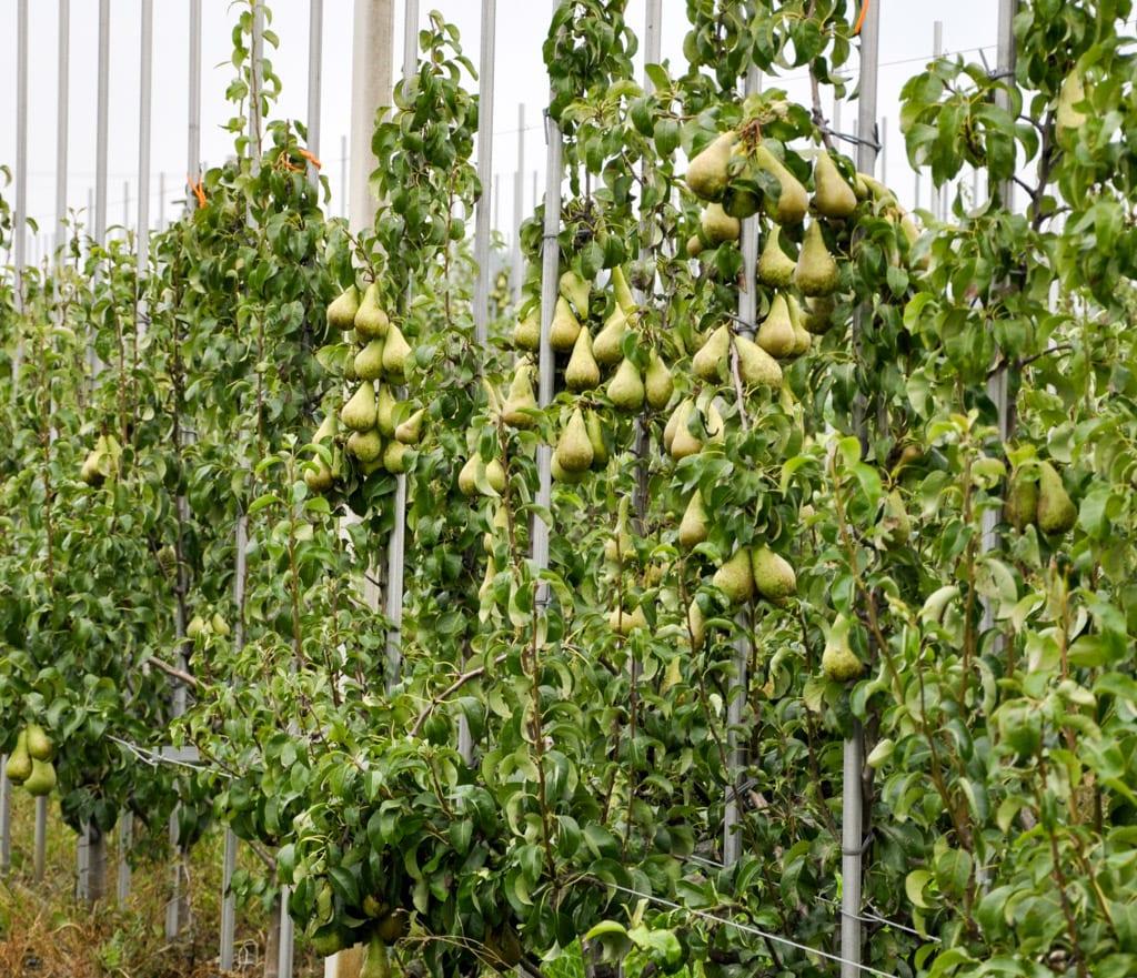 Sercadis® należy do grupy SDHI, czyli grupy obarczonej wysokim ryzykiem co do wystąpienia odporności. Dlatego najlepiej stosować go w mieszaninach ze środkami kontaktowymi. W naszym sadzie przeprowadziliśmy wiele takich kombinacji. Najlepsze wyniki otrzymaliśmy, stosując Sercadis® w mieszaninie z Delanem® Pro i Delanem® 700 WG, przy czym do sporządzania mieszanin w zupełności wystarcza użycie go w dawce 0,25 l – informował dr Jacek Lewko (fot. 2), który od 7 lat zajmuje się badaniami nad fungicydem Sercadis®. Doświadczenia prowadzone są m.in. na odmianach ‘Gala’ (fot. 3) i ‘Idared’, a także gruszach (fot. 4).
