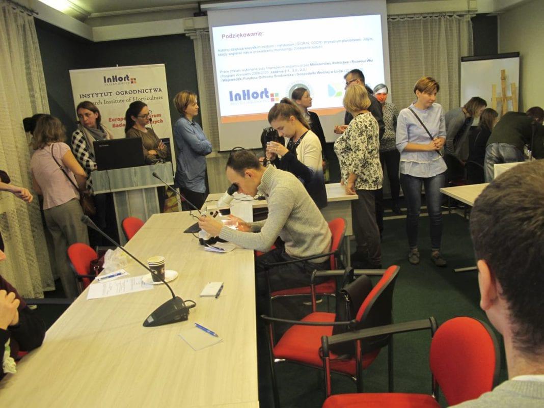 Organizatorzy szkolenia - dr hab. Barbara H. Łabanowska, prof. IO, mgr Wojciech Piotrowski i mgr Barbara Sobieszek - przygotowali specjalną prelekcję wygłoszoną przez mgr W. Piotrowskiego. Podczas prelekcji i dyskusji przekazano informacje o realnym zagrożeniu, biologii, szkodliwości D. suzukii oraz wynikach prowadzonego przez 6 lat monitoringu na terenie kraju. Szczególną uwagę zwrócono na cechy charakterystyczne D. suzukii w porównaniu do cech gatunków pokrewnych, co ułatwi prawidłowe rozpoznanie szkodnika. Podczas dyskusji przedstawiono możliwości zwalczania D. suzukii na podstawie informacji z innych krajów oraz własnych badań laboratoryjnych, zwracając uwagę na dozwolone w kraju środki ochrony i problem pozostałości w owocach.