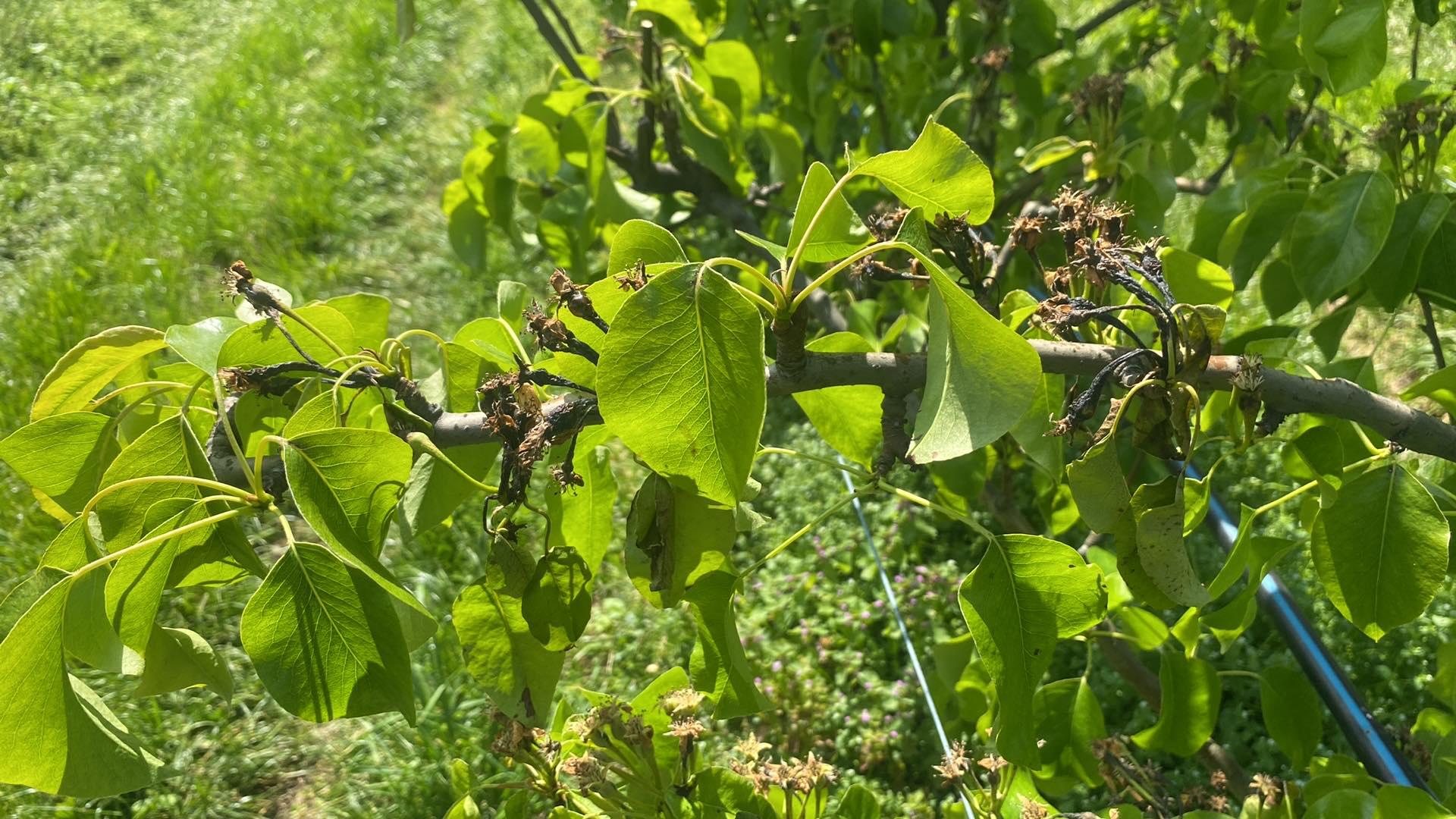 W niektórych sadach gruszowych obserwujemy silne porażenie zawiązków oraz pędów przez bakterie z rodziny Pseudomonas. Ma to związek z przebiegiem pogody w okresie bezpośrednio po kwitnieniu grusz. Wówczas temperatura spadała poniżej zera. Pseudomonas szczególnie silnie atakuje zawiązki gruszy w sytuacji bardzo wysokiej wilgotności i przy jednoczesnym występowaniu niskich temperatur. Zatem z punktu widzenia patogena, warunki do rozwoju były idealne.