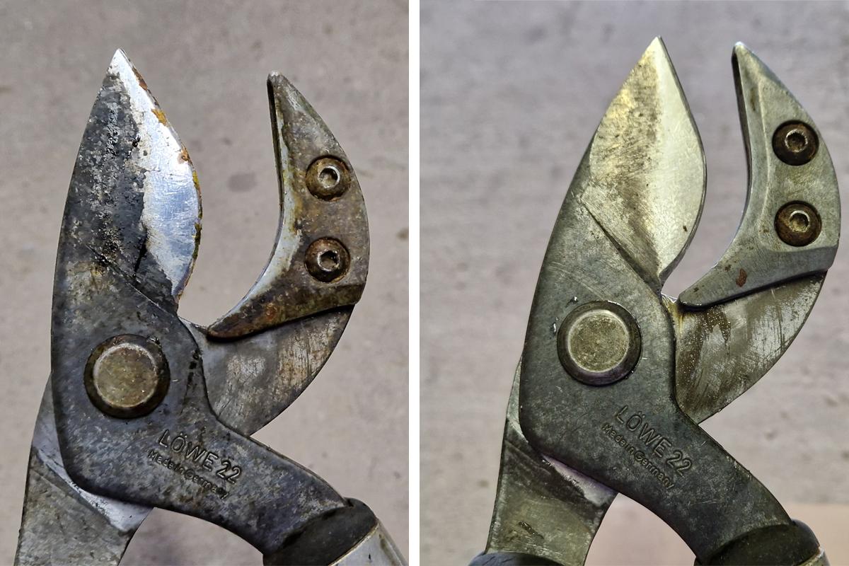 Posezonowe czyszczenie tradycyjnych sekatorów należy rozpocząć od rozłożenia ich na części pierwsze. Zebrane przez kilka tygodni zabrudzenia organiczne najlepiej usunąć specjalnymi środkami. Na przykład Stihl Varioclean lub Felco 981. Niektórzy nazywają je potocznie „wytrawiaczami” żywicy. Rozłożone elementy pokrywamy powyższymi produktami i czekamy kilka minut. Ważne jest, aby poczekać do momentu piany i momentu, w którym zauważymy, że zabrudzenia odchodzą od stali wraz z warstwą cieczy.