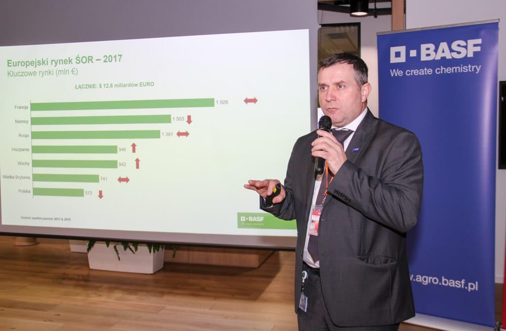 Tomasz Lewandowski, Crop Manager Fruit, ocenił, że w Polsce jest 110 ha sadów jabłoniowych, w których produkcja jabłek jest prowadzona na wysokim poziomie. Tegoroczna nadprodukcja jabłek oznacza problemy ze zbytem i niskie ceny owoców. Dodatkowo także inne kraje mocno inwestują w rozwój sadownictwa, np. Ukraina czy Kazachstan i tam powstają duże sady jabłoniowe. Na samej Ukrainie już jest tysiąc ha sadów jabłoniowych, z których owoce niebawem mogą konkurować z polskimi owocami na wielu rynkach docelowych. W opinii T. Lewandowskiego, jedyna droga, aby polskie sadownictwo konkurowało z innymi dostawcami owoców, to utrzymanie produkcji na wysokim poziomie oraz produkcja wysokiej jakości owoców. BASF chce pomóc sadownikom w tym działaniu.