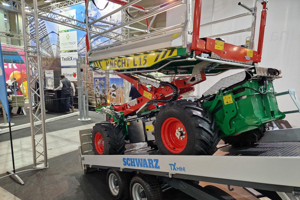 Duża cześć wystawy maszynowej na Interpomie dedykowana jest wyłącznie dla sadowników, którzy gospodarują na górzystych terenach, takich jak Południowy Tyrol. Niestety, w nizinnym terenie zagłębia grójeckiego, ich potencjał nie będzie całkowicie wykorzystany. Aby to zrozumieć wystarczy spojrzeć na wyjątkowo skomplikowane platformy marki KNECHT, z którymi możemy pracować na stromych stokach.