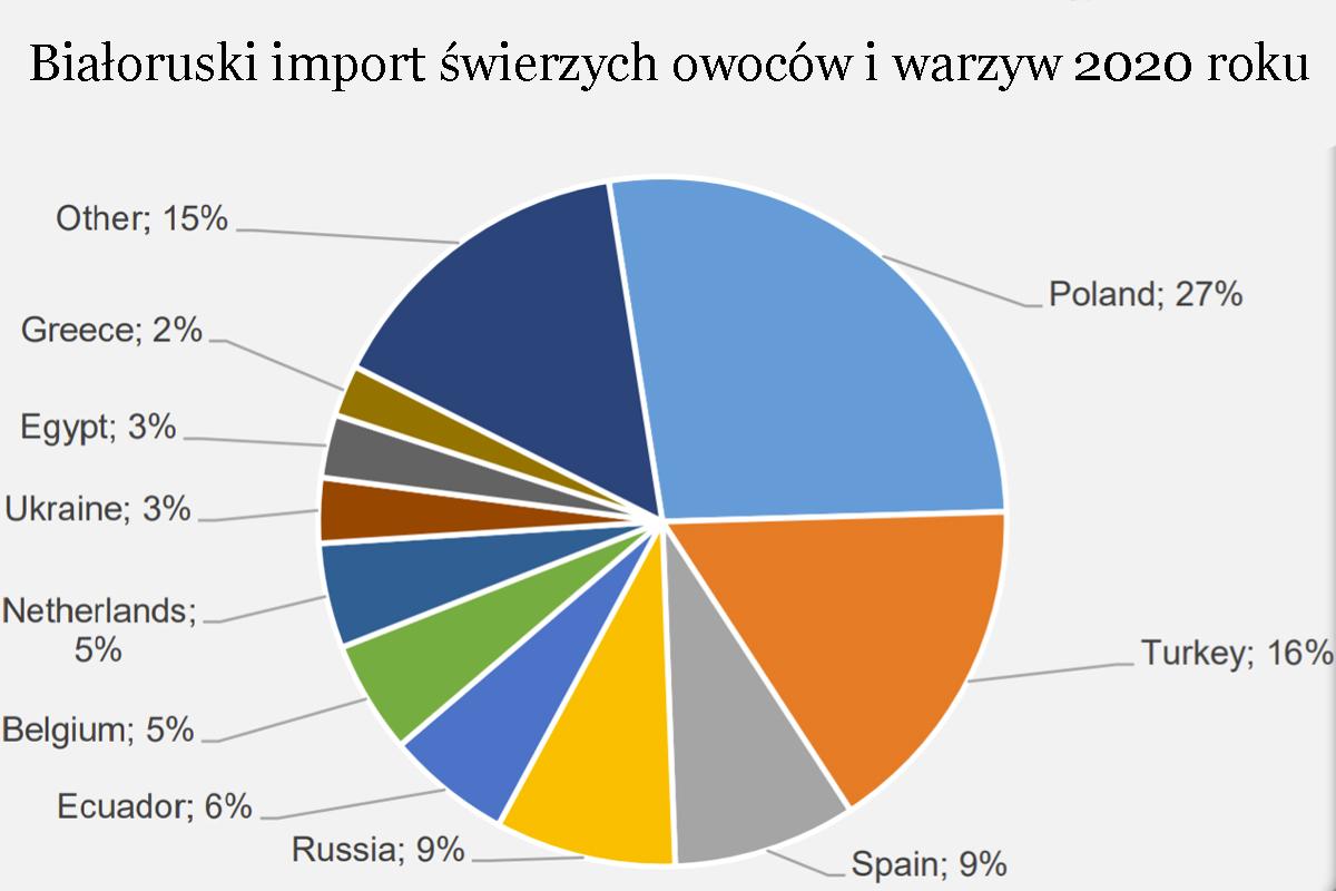 Na embargu bez wątpienia najwięcej straci Polska i Turcja. 27% importu świeżych warzyw i owoców na Białoruś pochodzi właśnie z Polski. Na drugim miejscu jest import z Turcji – 16%. Na trzecim miejscu znajduje się Hiszpania z 9% udziałem na rynku. Niemniej, Hiszpania mają na tyle zdywersyfikowany eksport, że białoruskie embargo znacząco nie dotknie tamtejszej produkcji.