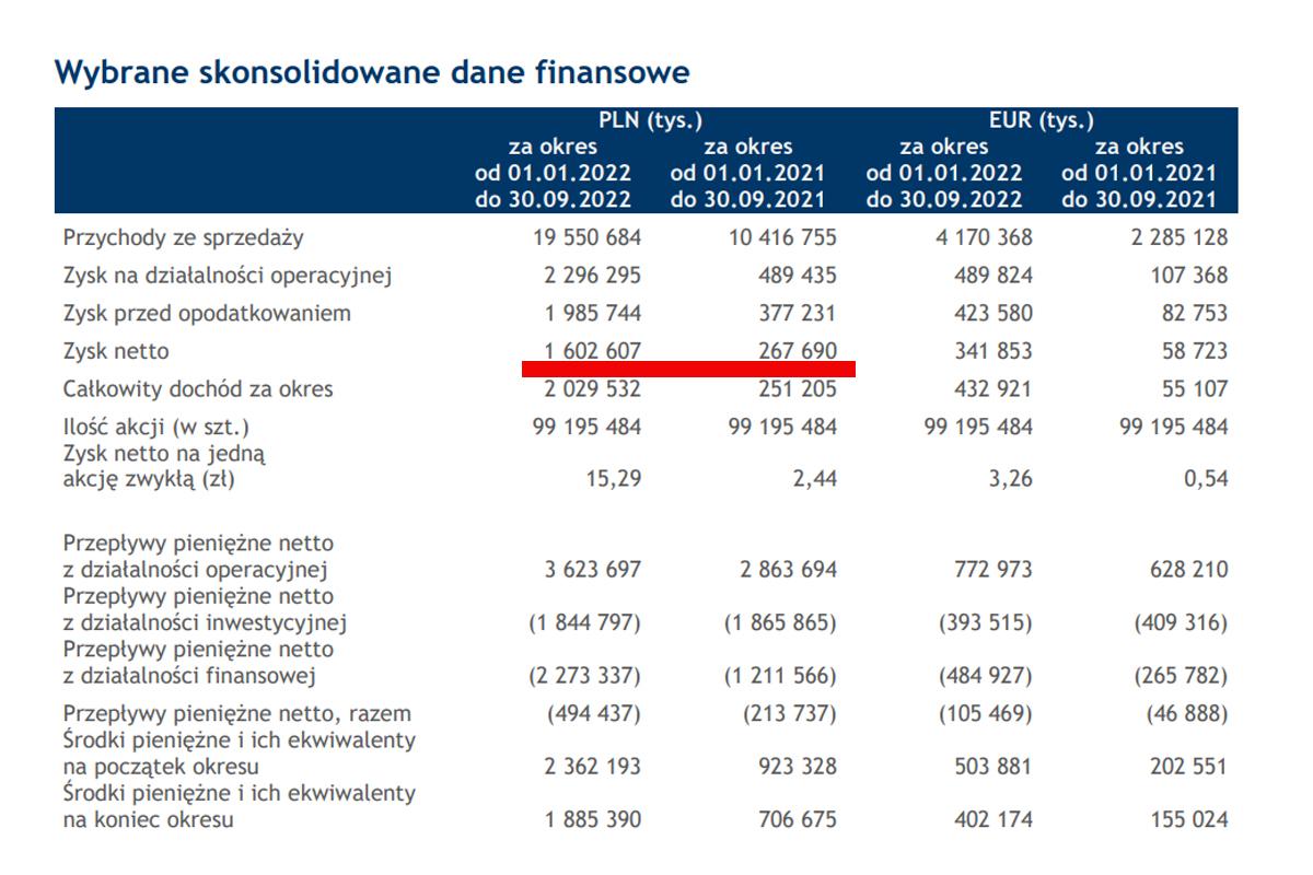 Przez 9 miesięcy 2021 roku Grupa Azoty zarobiła 267 milionów złotych. W tym samym okresie tego roku 1,60 miliarda złotych. Wstrzymanie produkcji w sierpniu spowodowało wspomniane straty finansowe w 3 kwartale. Niemniej w październiku została ona wznowiona. Co więcej w październiku i listopadzie spadały ceny gazu ziemnego. Ceny nawozów produkowanych przez spółkę spadły tylko nieznacznie. Zatem można spodziewać się, że raport roczny zakończy się rekordowymi zyskami, a czwarty kwartał roku „odrobi” straty z sierpnia i września.