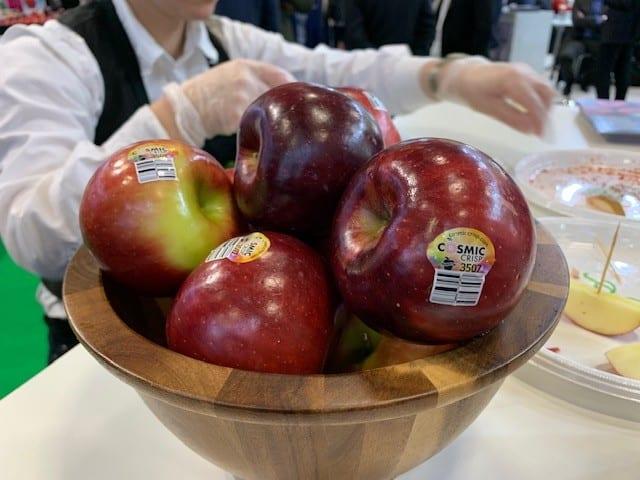 Jeżeli zastanowimy się co nowego w branży, szczególnie tej związanej z jabłkami, to na pierwszy rzut oka nie widać sensacji ani żadnego spektakularnego hitu. Amerykanie pokazywali swoją super odmianę Cosmic Crisp ale tylko w jednym miejscu i to oszczędnie częstując nawet nie owocami tylko ich cząstkami – w końcu wydali na ten projekt grube miliony dolarów. Tradycyjnie stoisko Pink Lady robiło wrażenie – mniej tam było jabłek, za to wygrywał pomysłowy i przemyślany marketing. Jak co roku hitem była torba Pink Lady – corocznie z inną grafiką ale zawsze z obowiązkowym różowymi akcentami.