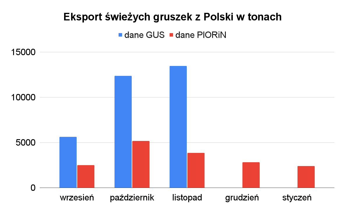 Powyższe doniesienia potwierdzają dane Eurostatu. Porównując obecny i miniony sezon, Holendrzy we wrześniu, październiku i listopadzie eksportowali o 20 do 40% gruszek więcej rok do roku. Nie ma dostępnych danych za grudzień i styczeń, ale patrząc na powyższe ceny i doniesienia o braku mocy przerobowych możemy sądzić, że eksport jest obecnie większy być może nawet o 50% rok do roku.