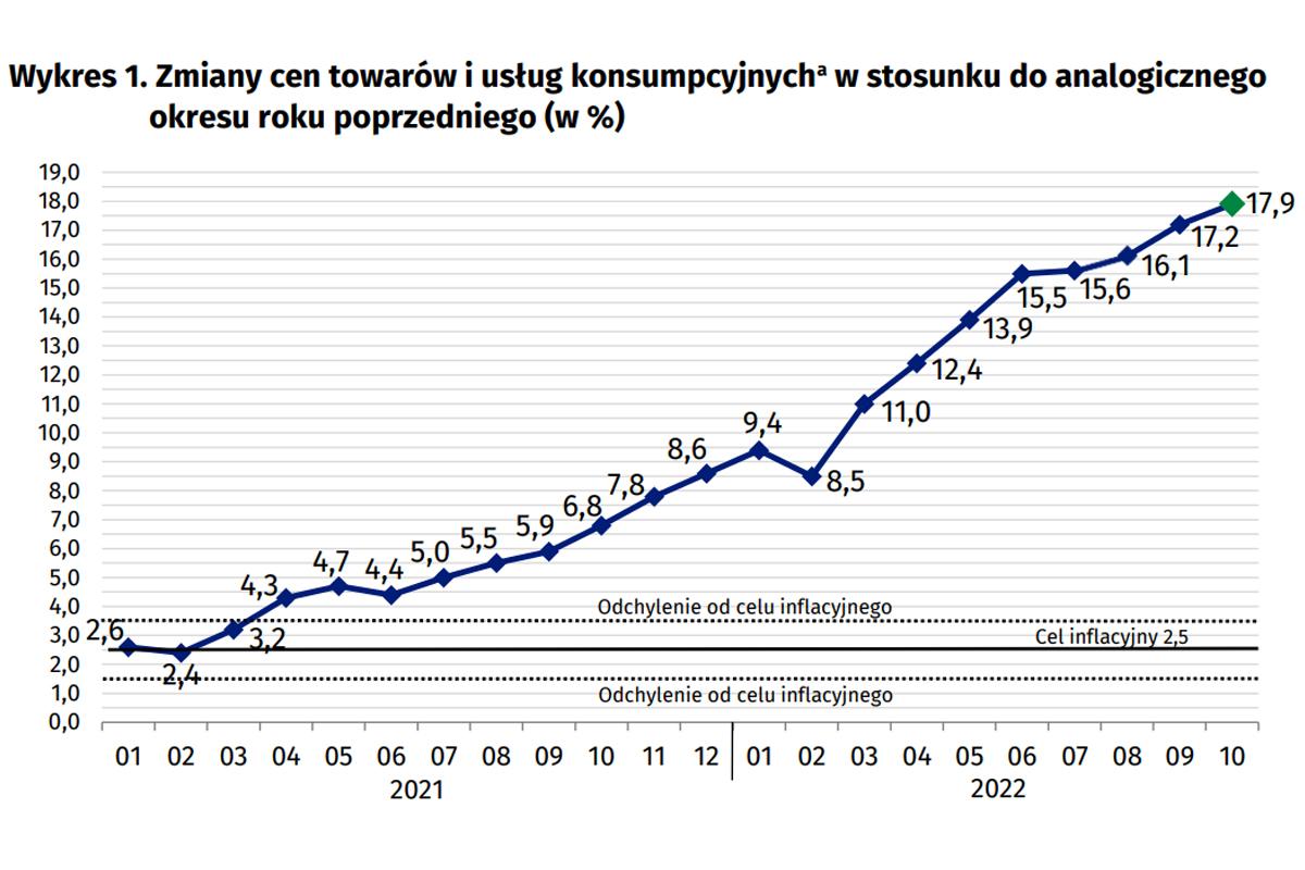 Nie ma niespodzianki, jeśli chodzi o inflację w Polsce. W październiku inflacja CPI wyniosłą 17,9% w stosunku do ubiegłego roku.