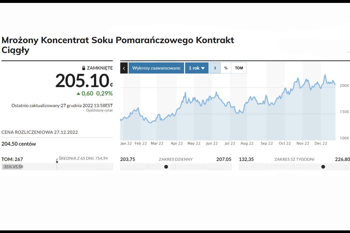 Potwierdzają to dane z amerykańskiej giełdy towarowej. Jak widzimy funt koncentratu pomarańczowego zdrożał od początku roku o około 50%. To z kolei dobra informacja dla polskiego koncentratu jabłkowego, który cały czas dobrze radzi sobie na amerykańskim rynku. Można założyć, że rosnące ceny koncentratu pomarańczowego w Stanach będą kolejnym impulsem do zwiększenia importu polskiego produktu przez amerykańskich odbiorców.