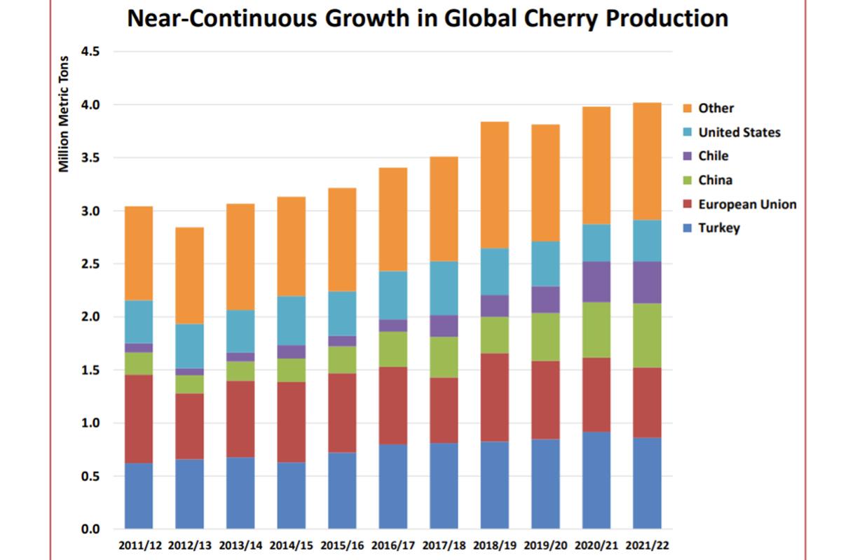 Co ciekawe 10 lat temu to Unia Europejska była największym producentem czereśni. Na przestrzeni lat Wspólnotę wyprzedziła Turcja. W tym roku kraj zebrał 860 000 ton tych owoców. Globalna produkcja wzrosła z 3 do 4 milionów. Największy procentowy wzrost produkcji zaliczyło Chile. Przez 5 lat kraj zwiększył produkcję niemal czterokrotnie.