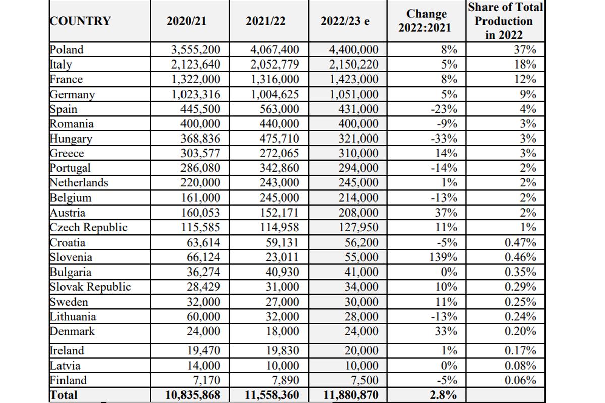 źródło: raport USDA. European Union: Fresh deciodous fruit annual