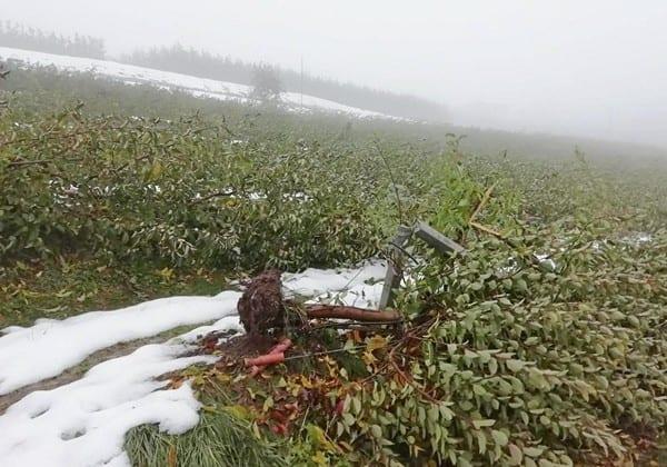 Zdjęcia pochodzą z Val di Non. W pobliżu Tassullo (Trydent) ciężar śniegu powalił sad jabłoniowy. „Pogoda nie jest sprzyjająca - wyjaśnia producent - ponieważ pada deszcz i śnieg, a ty nie możesz zabrać się do jesiennej pracy”.