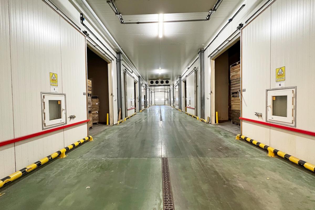 Ponadto obiekt posiada 10 wysokich komór chłodniczych o wielkości 129m2 każda, które wyposażone są płuczkę CO2, separator azotu oraz azot w postaci ciekłej lub gazowej, zawory bezpieczeństwa i zawory doprowadzające azot do wnętrza komory chłodniczej, analizatory składu gazowego.