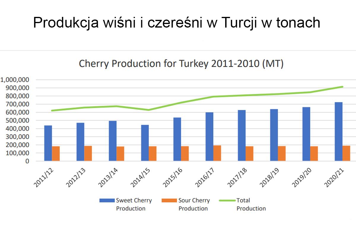 W ubiegłym sezonie Turcja wyprodukowała 860 000 ton czereśni i niepodzielnie jest globalnym liderem w produkcji. Polska produkcja stanowi zaledwie niecałe 7% produkcji tureckiej. Pomimo dużego eksportu, zdecydowana większość tureckich czereśni zostaje jednak skonsumowana lub przetworzona w kraju - około 90%.