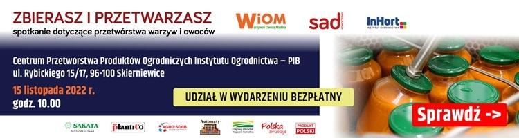 Centrum Przetwórstwa Produktów Ogrodniczych Instytutu Ogrodnictwa – PIB, ul. Rybickiego 15/17, 96-100 Skierniewice. 15 listopada 2022 r., godzina 10:00.