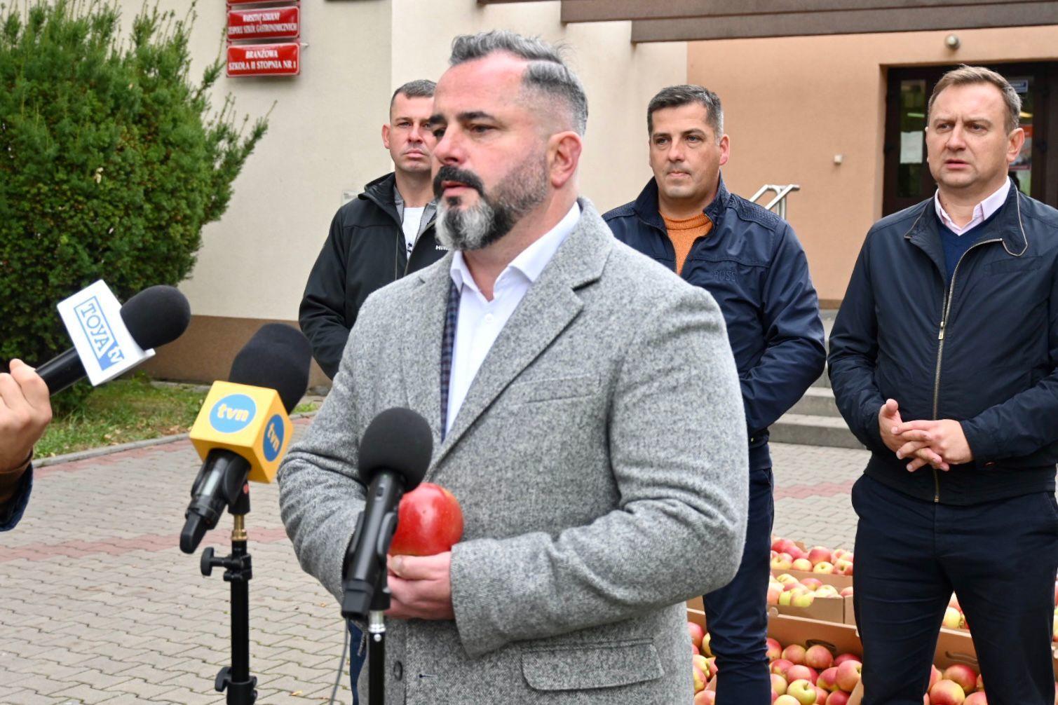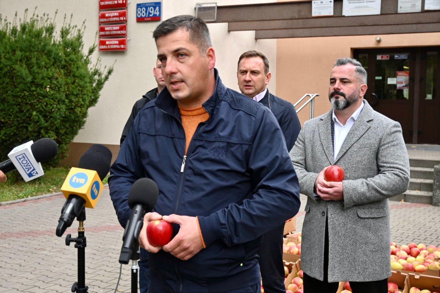 - W zeszłym tygodniu był dzień jabłka, to był niezwykle smutny dzień w polskim sadzie, dlatego że polski sadownik, polski rolnik musi sprzedawać produkty, o które musi dbać cały rok, poniżej kosztów ich wytworzenia. Takim remedium na to, co się dzieje w polskim rolnictwie, miała być Krajowa Grupa Spożywcza. Ta grupa mogłaby, poprzez przetwórnie, skupować te jabłka, bo też trzeba jasno powiedzieć, że tych jabłek na polskim rynku, od polskich producentów, jest od miliona do półtora miliona ton za dużo. Jest ich za dużo, bo tak jak Daniel powiedział, jest embargo na Białoruś i Rosję, a to byli nasi główni odbiorcy. To powoduje, że tego polskiego jabłka jest zdecydowanie za dużo. Po pierwsze Krajowa Grupa Spożywcza mogłaby kupować, po odpowiedniej cenie, tak żeby kreować ten rynek, ceny i powodować również to, że polscy producenci, nie tylko jabłka, ale wszystkich owoców i warzyw, będą je produkować, wychodząc na prostą, nie poniżej kosztów. Z jabłka można zrobić koncentrat, rynek Stanów Zjednoczonych jest na tyle chłonny, że dzisiaj zapotrzebowanie jest ogromne. Prywatne firmy nie są w stanie tego jabłka skupić, przetworzyć i wysłać do Stanów Zjednoczonych. Kolejną rzeczą, którą ministerstwo rolnictwa mogłoby zrobić poprzez Rządową Agencję Rezerw Strategicznych, to skupić polskie jabłko i przekazać, tak jak my dzisiaj, do placówek oświatowych, zapewniając zdrowy posiłek. Gdyby chcieć obdzielić przez 5 dni w tygodniu wszystkich uczniów w szkołach, podstawowych i ponadpodstawowych, okazałoby się, że około pół miliona ton jabłek byłoby wykorzystane, a dzieciaki miałyby zdrowy posiłek. To jest kolejny element, który może spowodować, że uratujemy polskie sadownictwo. Trzecia rzecz, którą minister mógłby zrobić, to dogadać się z tymi rolnikami, którzy mają sady i wesprzeć ich przebranżowienie. Przypomnę tylko, że drzewo, nim będzie rodziło, musi rosnąć około 5 lat, to nie jest takie proste przebranżowić się, wyciąć te drzewa, ale dzisiaj, widząc, że tego jabłka jest na rynku za dużo, można się dogadać z sadownikami, z rolnikami i wesprzeć ich finansowo, tak by mogli wejść w kolejną branżę, w niszę, jeśli chodzi o owoce i warzywa. To jabłko jest symbolem nieudacznictwa rządu PiS, to właśnie rząd PiS pozwala okradać polskiego rolnika, bo czym jest fakt, że rolnik produkuje jabłko za złotówkę, a zewnętrzne, często zagraniczne firmy narzucają mu cenę poniżej kosztów produkcji, choć jest to prawnie uregulowane. Nikt nie reaguje, nie reaguje ani UOKiK, ani inne instytucje do tego powołane i polski rolnik sprzedaje je za 30 gr. Czyste złodziejstwo, na które pozwala ministerstwo rolnictwa. Dzisiaj jesteśmy po to, by pokazać w sposób radosny, co można z tym jabłkiem zrobić. Przekazujemy te jabłka do tej placówki i pani dyrektor, myślę że powie, co można z tego jabłka zrobić, jak można je wykorzystać. Powiem państwu więcej, dzisiaj polski sadownik z przyjemnością dostarczy do tego typu placówek polskie jabłko, bo on się zastanawia, czy je zrywać, czy je wysypać do rowu, bo tak naprawdę to są tylko koszty przechowywania, przy tej cenie prądu ogromne, więc dylemat by się rozwiązał. Rząd musi się ruszyć, zamiast zajmować się walką o stołki i przygotowywaniem kolejnych bubli prawnych. Powinien się zająć tą kwestią, tego jabłka, które jest tylko i wyłącznie symbolem tego, co się dzieje w polskim rolnictwie" - zwracał uwagę poseł Arkadiusz Iwaniak.