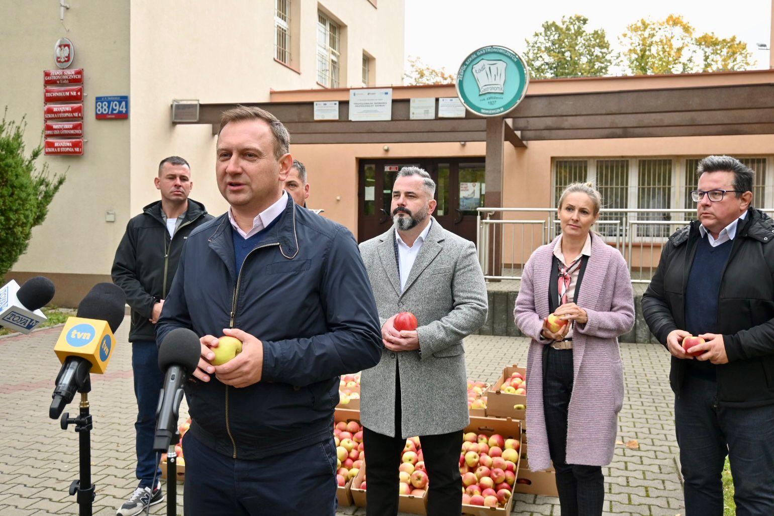 - Wcześniej w szkołach podstawowych były programy dedykowane młodszym uczniom, kiedy przekazywano dzieciom warzywa i owoce do jedzenia, natomiast zawsze pomijano szkoły ponadpodstawowe. Teraz chciałabym te nawyki utrwalać, również u uczniów starszych. Bardzo serdecznie dziękuję za to, że dzisiaj otrzymaliśmy takie wsparcie. Myślę, że te jabłka w szkole gastronomicznej na pewno się nie zmarnują, część zostanie zjedzona przez moich uczniów, mam 726 uczniów, więc na pewno dzieciaki bardzo chętnie te jabłka zjedzą, natomiast pozostałą część postaramy się przetworzyć, tak aby się nie zmarnowały, czyli na musy jabłkowe, kompoty, szarlotki, również wszystko dla naszych uczniów. Gdyby był to program długofalowy, gdzie uczniowie mogliby co tydzień dostawać jabłka do jedzenia, myślę, że to wyrobiłoby trwałe i zdrowe nawyki wśród młodych ludzi - zauważyła Zofia Wrześniewska, dyrektor Zespołu Szkół Gastronomicznych w Łodzi.