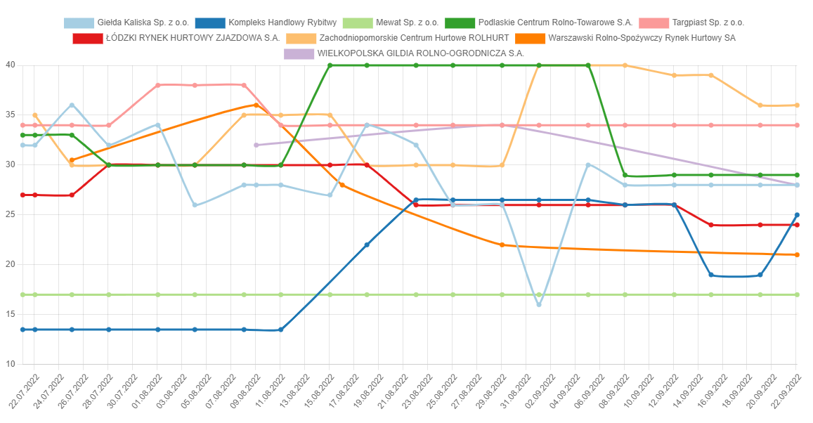 W połowie września obserwowaliśmy ceny, które znajdowały się na poziomie około 11,00 do maksymalnie 13,00 złotych za kilogram, aby dwa tygodnie później oferować cenę 6,00-7,00 zł za kilogram?