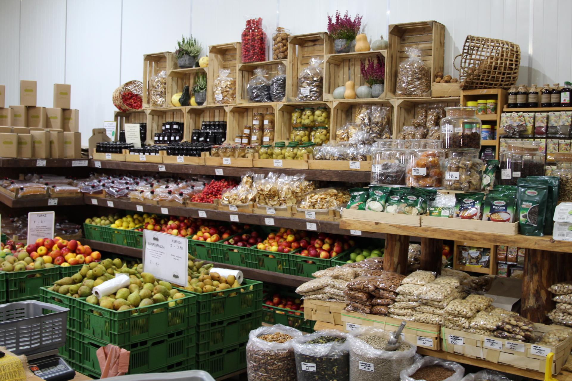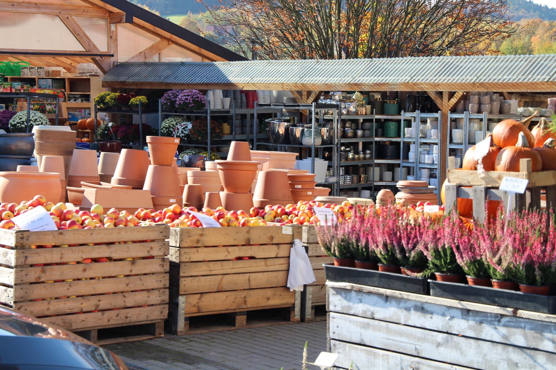 Handel w sklepie, jaki państwo Stuglikowie prowadzą, opiera się na tym, żeby jak najwięcej sprzedać tego, co sami wyprodukują, ale starają się też wesprzeć lokalnych producentów. To od nich pochodzi część owoców i warzyw oferowanych w sklepie – świeżych, ale i przetworzonych m.in. na soki, dżemy, a w centrum ogrodniczym – kwiaty, takie jak chryzantemy czy wrzosy.