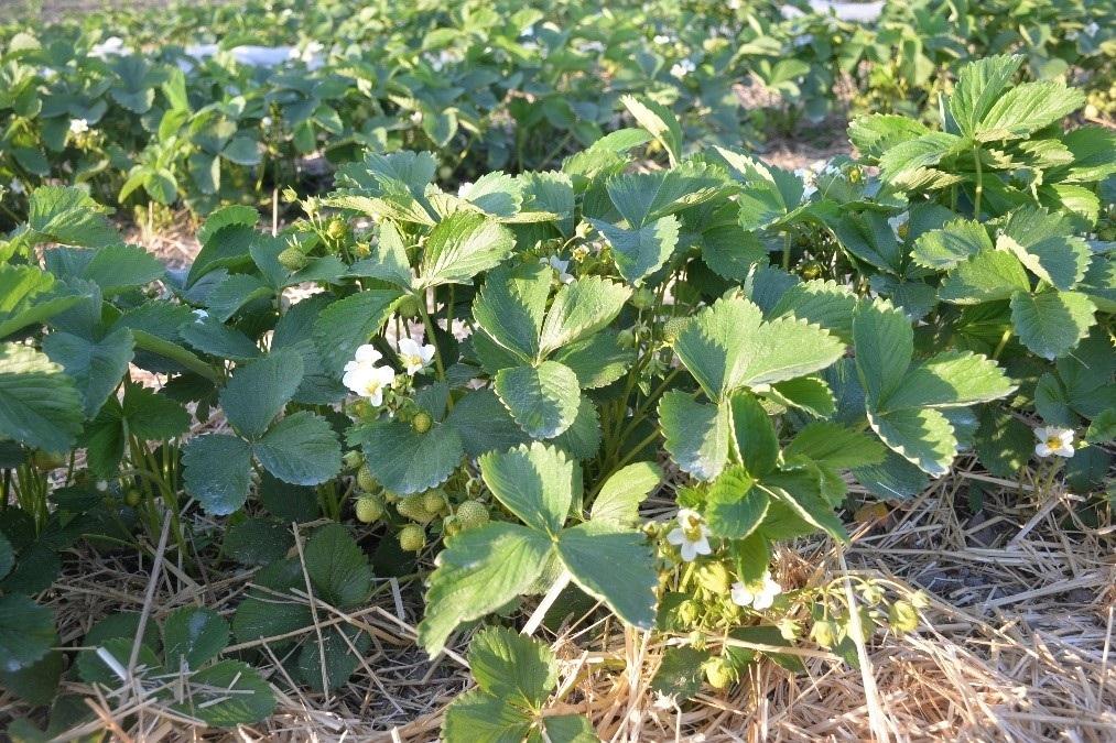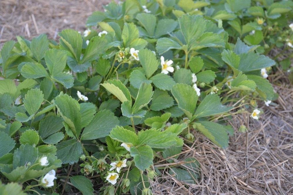 Na plantacjach truskawki w otwartym gruncie, zależnie od lokalizacji plantacji, od wczesności odmiany i okrywania roślin w okresie zimy i wczesnej wiosny rośliny znajdują się w fazie od BBCH 65 – u odmian wczesnych nieokrywanych (‘Allegro’) i średniowczesnych okrywanych (‘Grandarosa’, ‘Roxana’), u których obserwuje się kwitnienie pełne: otwarte kwiaty wtórne (B) i trzeciorzędowe (C), pierwsze płatki opadają (fot. 1–3) do BBCH 73 – w odmian wczesnych okrywanych (‘Allegro’), u których wyraźnie widoczne są nasiona na tkance zawiązka (fot. 4).