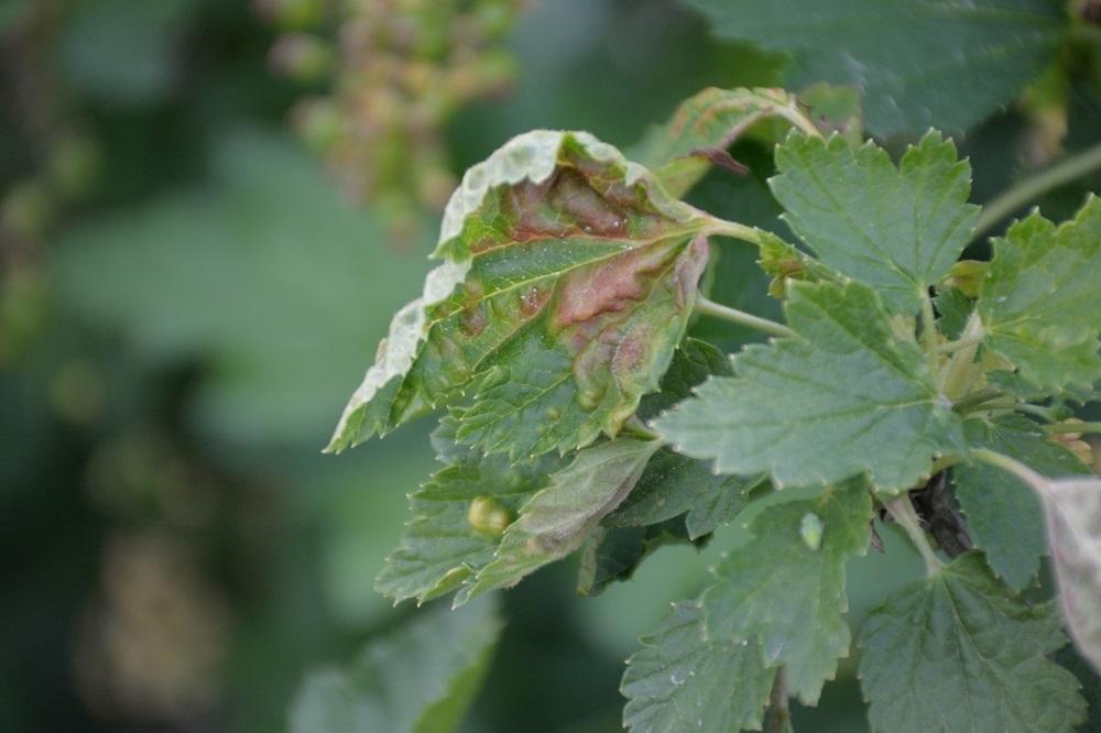 - Antraknoza (opadzina liści) porzeczki (obecna) – preparat Luna Sensation 500 SC stosować zapobiegawczo lub od pierwszych objawów choroby, od początku kwitnienia do zbiorów owoców (BBCH 39–87), w dawce 0,6–0,8 l/ha lub preparat Zato 50 WG stosować od pierwszych objawów choroby lub po zbiorach owoców, w dawce 0,2 kg/ha lub preparaty miedziowe stosować bezpośrednio przed kwitnieniem, zaraz po kwitnieniu aż do zbiorów (BBCH 59–81), w dawce 3,0 kg/ha;