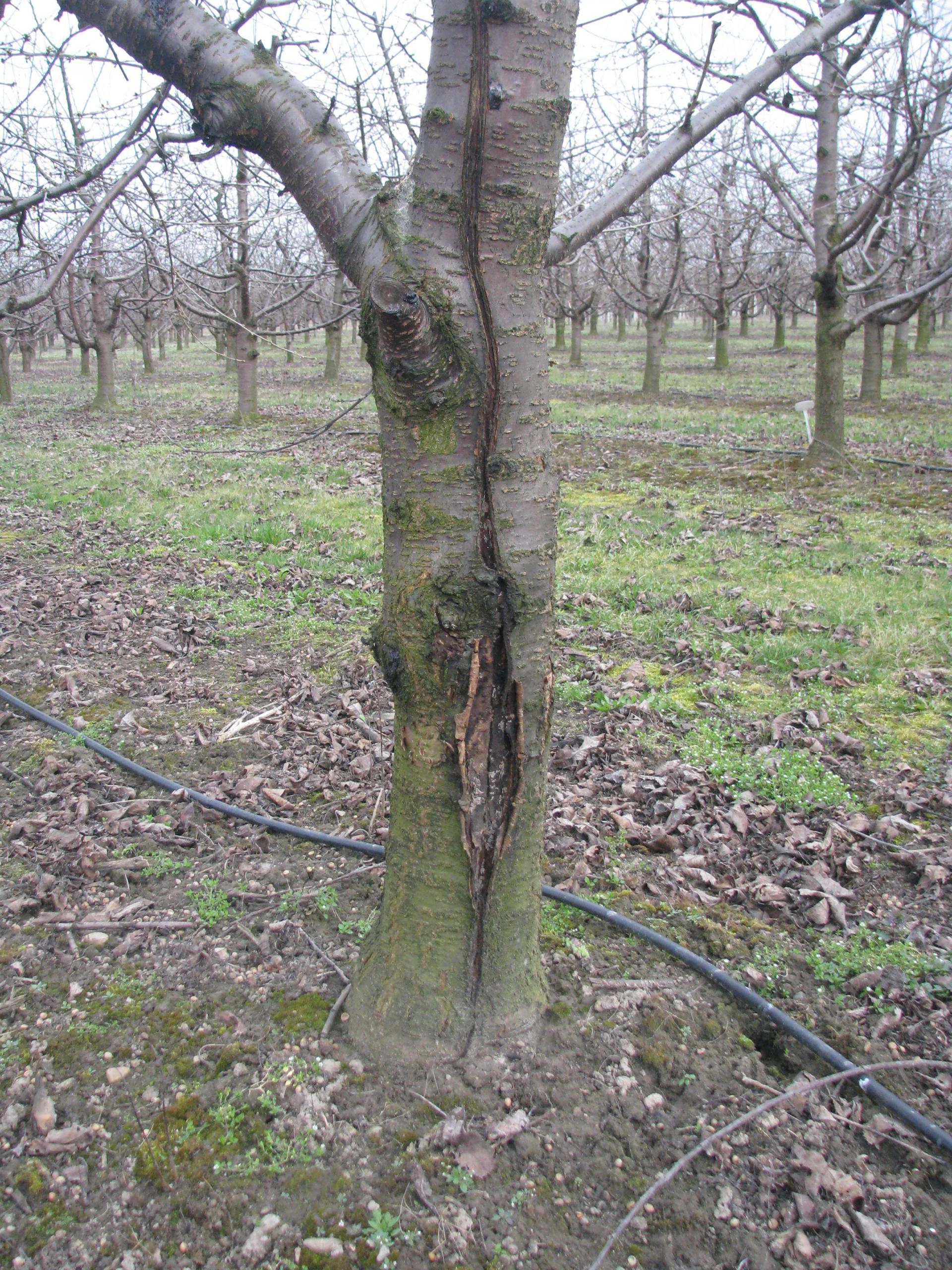Obfite opady, które wystąpiły pod koniec czerwca i na początku lipca, przyczyniły się do pękania owoców odmian późno dojrzewających, wyróżniających się dużą podatnością na pękanie, m.in. Melitopolska Krupnopłodna, Tamara. Pękające owoce były podatne na gnicie. Problem gnicia owoców wystąpił przede wszystkim w kolekcji czereśni, w której znajdują się blisko 20-letnie drzewa szczepione na silnie rosnącej podkładce F12/1. W kolekcji prześwietlenie koron było stosunkowo słabe, a wśród gęstych koron, przy zwiększonej wilgotności powietrza i licznych owocach skupionych blisko siebie (przykład: Lapins, Sweet- heart, Staccato, Axel) łatwo rozwijała się brunatna zgnilizna drzew pestkowych.