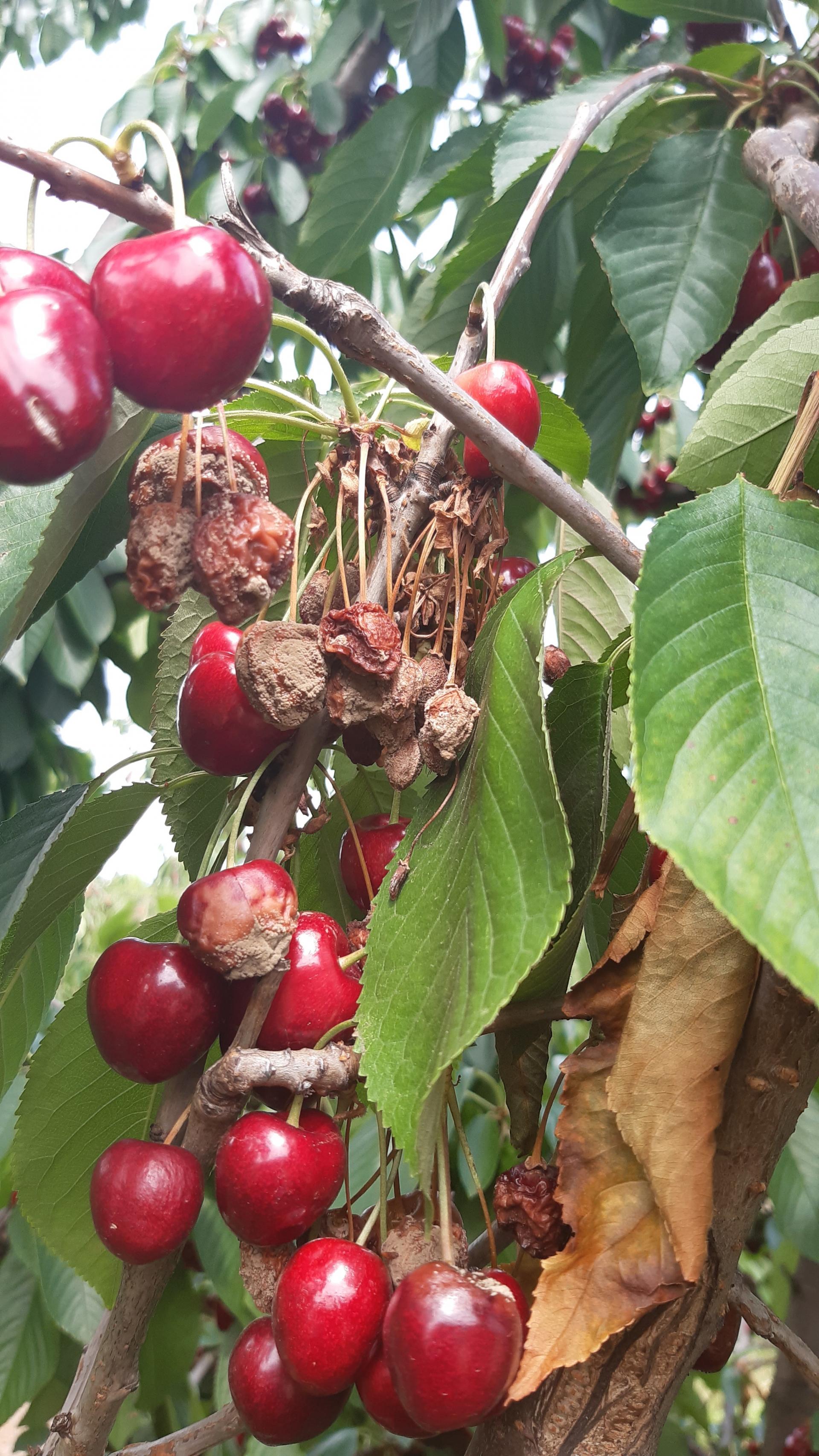 W rejonach Polski, gdzie w okresie kwitnienia i dojrzewania czereśni, a więc głównie w maju, czerwcu i lipcu często występowały opady, kolejnym zagrożeniem była monilioza, na którą sadownicy wykonywali 3 do 6 zabiegów (przypomnę, że w wielu rejonach w czerwcu i lipcu odnotowano po kilkanaście dni z opadami, w przypadku tych intensywnych czy tych, którym towarzyszył grad, powodowało to pękanie owoców i uszkodzenia mechaniczne skórki, co dodatkowo sprzyjało wystąpieniu tej choroby).