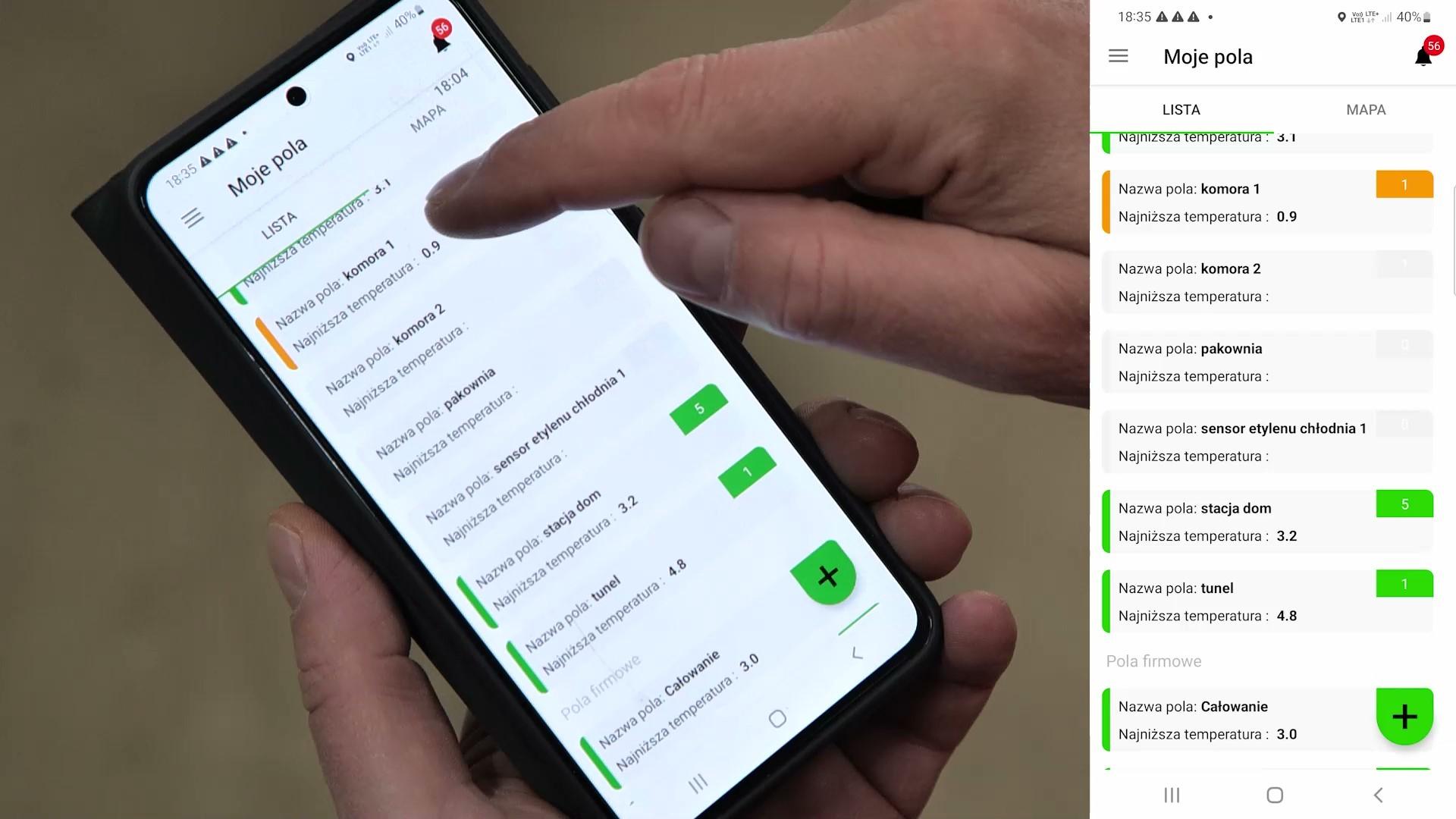 Po rozłożeniu czujników w sadzie należy zeskanować z nich kody QR. W ten sposób następuje połączenie z aplikacją mobilną, do której co kilka minut są przesyłane dane pobierane z pola (lub komory przechowalniczej).