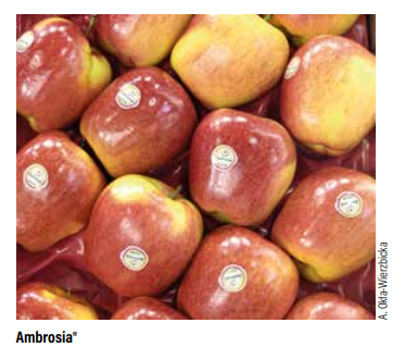 Ambrosia® to czerwone jabłko z różowym rumieńcem na jasnożółtym tle. Dodatkową zaletą tej odmiany jest wolno ciemniejący miąższ. W latach 90. państwo Sally i Wilfird Mennellowie znaleźli w swoim sadzie jabłoniowym w Kolumbii Brytyjskiej (Kanada) przypadkową siewkę. Jej pierwsze owoce były tak smaczne, że Mennellowie postanowili ją rozmnożyć. Szybko okazało się, że owoce z nowych drzewek były równie atrakcyjne i smaczne, co z drzewa matecznego. Odmiana została zarejestrowane w 1993 r. i w ciągu ostatnich 20 lat zyskała na popularności. Obecnie jest dostępna w sprzedaży na całym świecie. Logo marki Ambrosia® przedstawia przekrojony plasterek jabłka z jednym nasionem, symbolizując gwarancję jakości – tego, że w każdym jabłku Ambrosia® zawierają się wszystkie nieodparte cechy pochodzące od tej pierwszej, przypadkowej siewki.