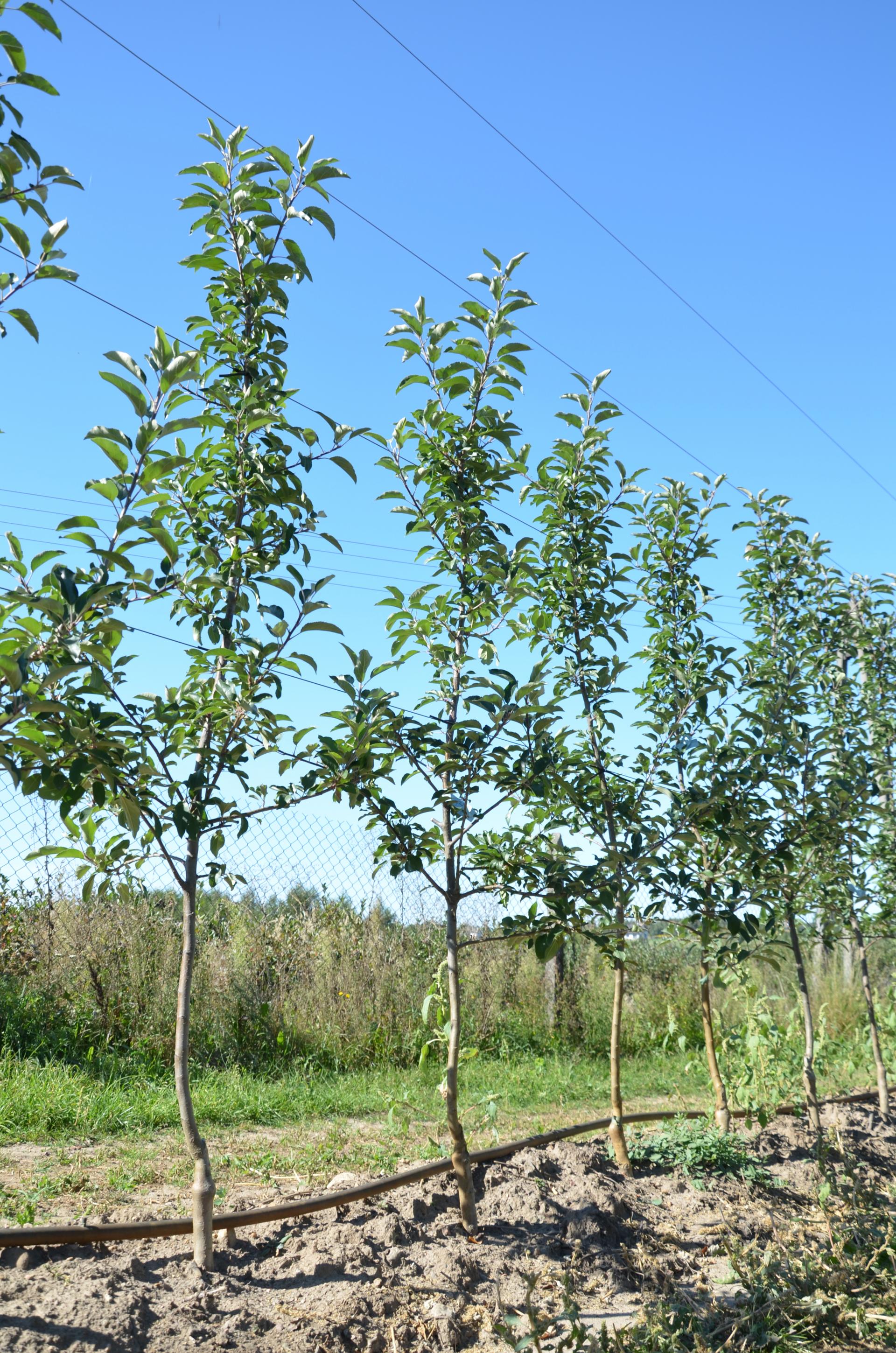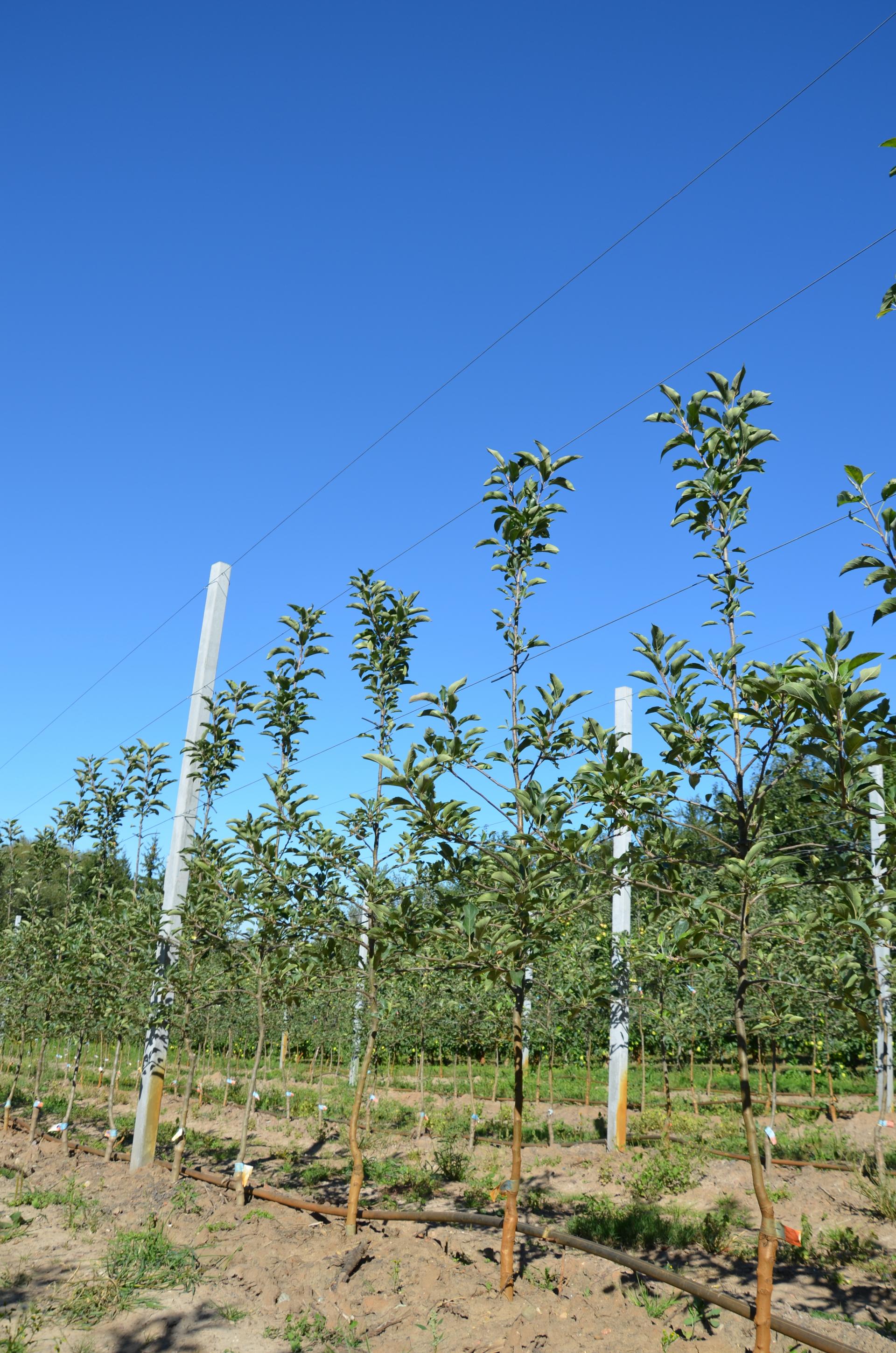 Wiosną tego roku gospodarz posadził drzewa kolejnego nowego sporta Gali – Nikangie. Jest to odmiana o bardzo intensywnym wybarwieniu, delikatnie paskowana. Do założenia kwatery użyto dobrze wyrośniętych drzewek typu knip-boom, szczepionych na podkładce M.9 RN 29, czyli na silniejszym niż standard podklonie. Wybór padł na tę silniej rosnącą podkładkę ze względu na to, że sad został założony zaraz po wykarczowaniu starszych drzew. Drzewka posadzono co 60 cm w rzędzie. Jak można było zobaczyć w sadzie w Niemojkach, pół roku po posadzeniu drzewa odznaczają się dobrym wzrostem. Przy takim gęstym sadzeniu i dobrym wigorze, gospodarz prognozuje plony w drugim roku na poziomie 30 t/ha.