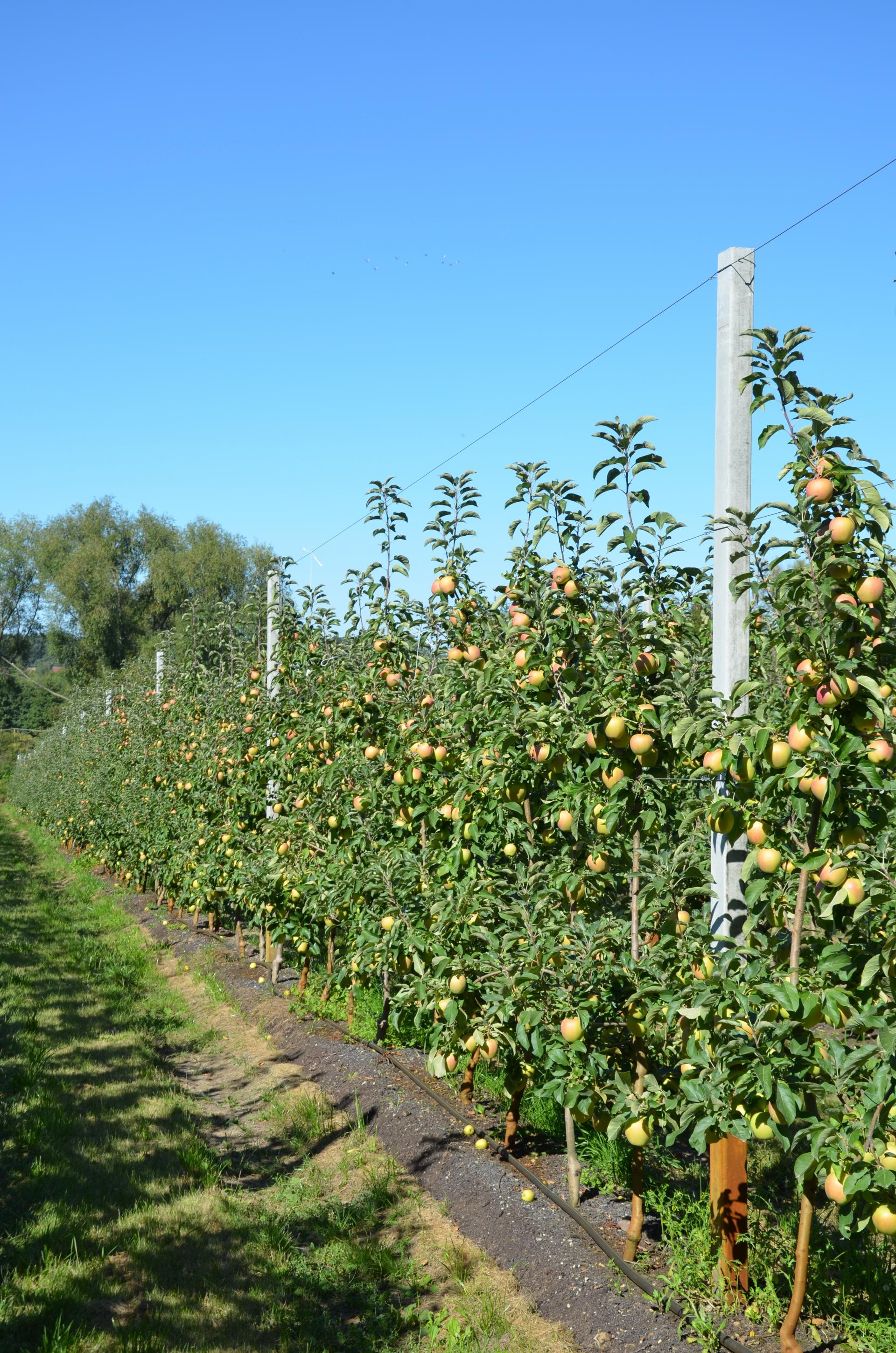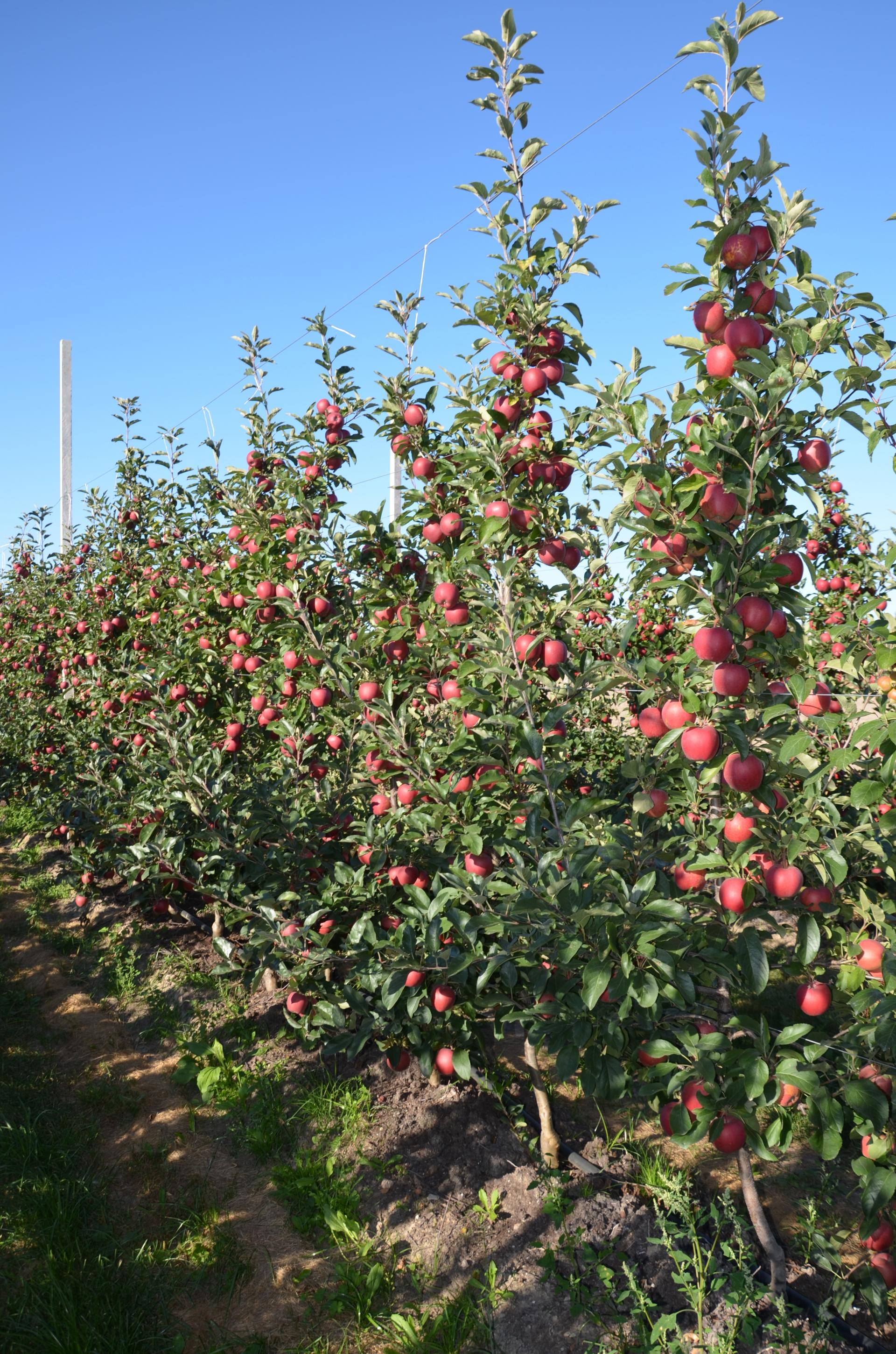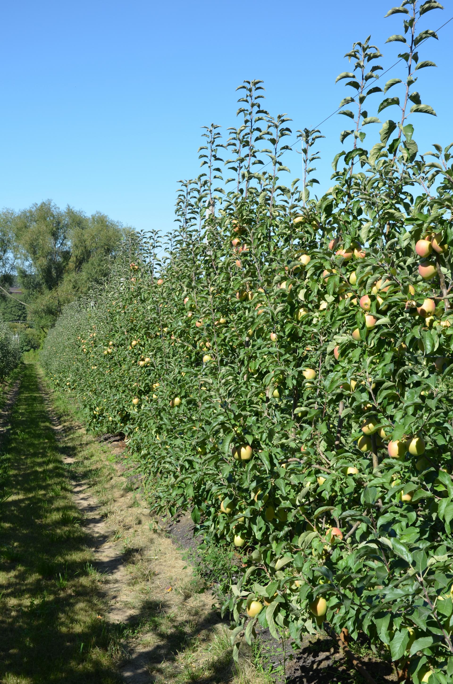 Drzewa sadzi się co 75 cm, a ostatnio nawet co 60 cm. Z sadu tak intensywnego można zebrać rocznie nawet około 70 ton owoców, dość „grubych” i wyrównanej jakości.
