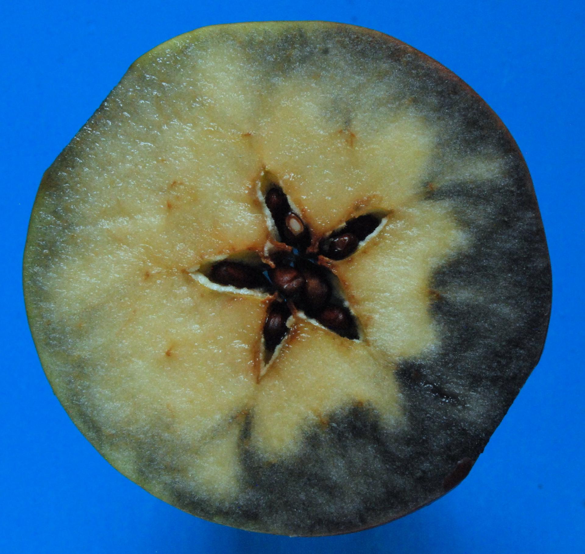 Wysoka temperatura i silne nasłonecznienie spowodowały uszkodzenia słoneczne jabłek (od niewielkich do bardzo rozległych) oraz mogły negatywnie wpłynąć na akumulację wapnia w owocach. Tradycyjnie o uszkodzeniach słonecznych poza odbarwieniem skórki „informuje” nas wynik testu skrobiowego, tzn. wielokrotnie opisywany przez mnie „połówkowy” rozkład skrobi. Jest on szczególnie przydatny do zdiagnozowania uszkodzeń owoców, które uległy poparzeniom, a powstający rumieniec zamaskował odbarwienia skórki.