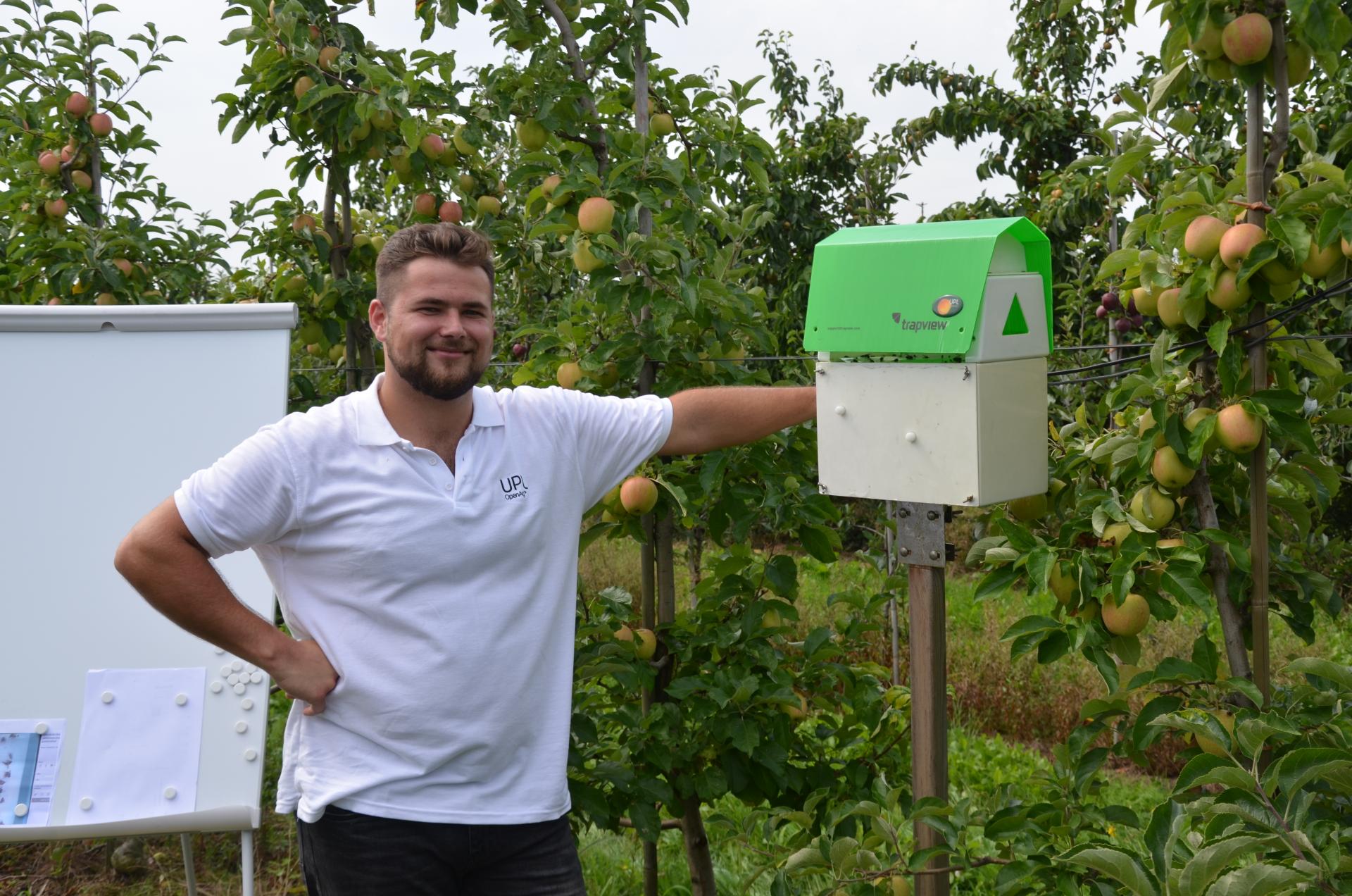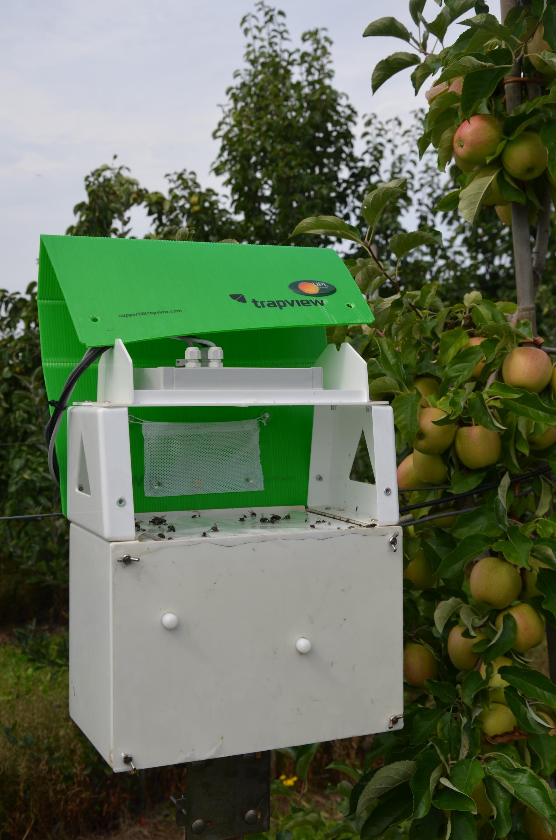- Trapview jest to aplikacja do cyfrowego monitorowania szkodników w sadzie poprzez robienie zdjęć kamerą zamontowaną w urządzeniu (zainstalowanym w kwaterze). Na podstawie odczytów aplikacji możliwe jest monitorowanie presji szkodników oraz wyznaczanie przewidywanego terminu zabiegu, co odbywa się na podstawie odczytów meteorologicznych, które również oferuje urządzenie umieszczone w sadzie. Aplikacja generuje także wykresy pogodowe oraz dotyczycące aktywności szkodników. W wilanowskim sadzie N. Kot zaprezentował odczyty ustawione na owocówkę jabłkóweczkę, ale możliwe jest ustawienie urządzenia na odczyty dotyczące także innych gatunków. Dzięki takiemu rozwiązaniu możliwe jest minimalizowanie kosztów, gdyż dzięki stałemu monitorowaniu szkodników dokładnie wiadomo, kiedy wykonać zabieg. Ponadto aplikacja codziennie wysyła raporty dotyczące sytuacji w sadzie, możemy cofnąć się też do danych historycznych.