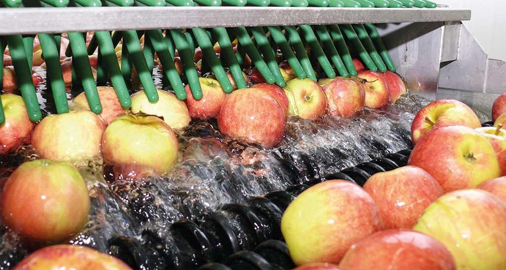 Bardzo istotne jest też zwalczanie drobnoustrojów podczas mycia/sortowania owoców, a w tym przypadku podstawą jest dezynfekcja wody. Może odbywać się ona poprzez: promieniowanie UV, ozonowanie, stosowanie podchlorynu sodu, nadtlenku wodoru czy wody elektrolizowanej (kwas podchlorawy).