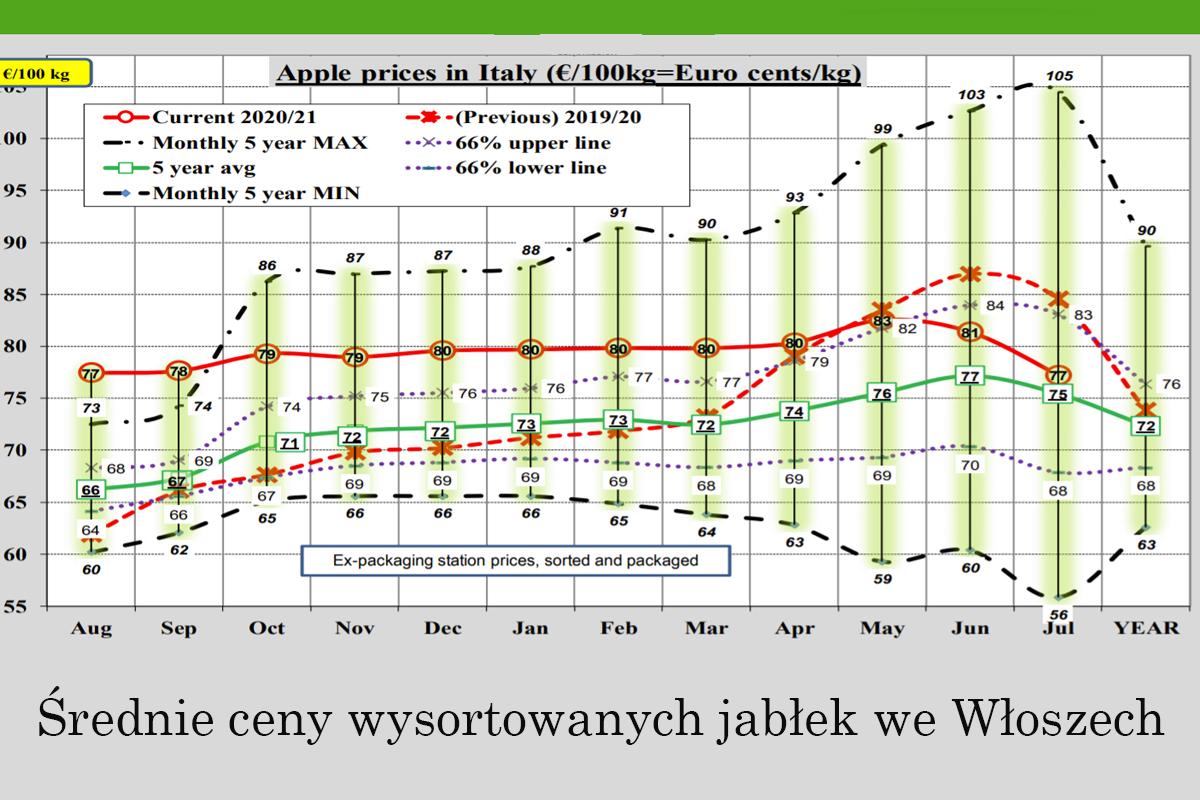 Spadki cen zaliczyły kraje, gdzie zapasy jabłek są największe. Według ostatniego raportu WAPA to właśnie Polska i Włochy. Francuzi mający około 1/3 zmagazynowanego wolumenu mogą poszczycić się stabilizacją w tym sezonie. W Niemczech notujemy delikatne wzrosty cen latem.