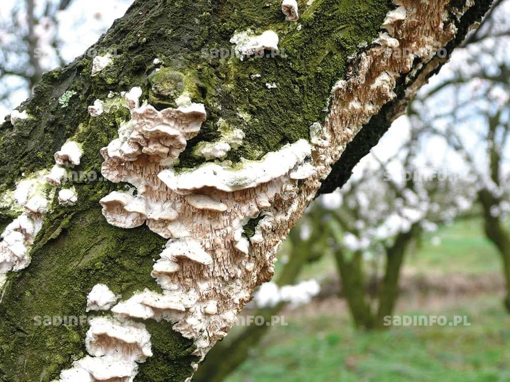 Drzewa osłabione lub uszkodzone przez mróz są też szczególnie podatne na porażenie przez grzyby z rodzaju Leucostoma, sprawców leukostomozy drzew pestkowych, choroby najczęściej występującej na brzoskwiniach, morelach i nektarynach. Jej szkodliwość jest duża, zwłaszcza w młodych sadach, w których może doprowadzać do gwałtownego zamierania drzew. Pierwszym widocznym objawem choroby jest gumowanie w miejscu infekcji, pojawiające się najczęściej na przełomie kwietnia i maja. Wyciekająca „żywica” początkowo jest koloru bursztynowego, a potem ciemnobrązowego, czasami wręcz czarnego, a na jej powierzchni mogą rozwijać się grzyby saprotroficzne (sadzaki). W miejscu gumowatych wycieków często widoczne są wydłużone nekrozy, które hamują przemieszczanie się wody i składników odżywczych do wyższych partii drzewa, powodując więdnięcie i zamieranie gałęzi, bądź większych konarów powyżej rany zgorzelowej. Latem, kiedy drzewo wykazuje wyższą naturalną odporność, wokół nekrozy tworzy się często tkanka zabliźniająca (kalusowa). W zapobieganiu stratom powodowanym przez leukostomozę bardzo ważne jest zwrócenie uwagi na prawidłową agrotechnikę, w tym dobór stanowiska. Jest to szczególnie wskazane dla gatunków podatnych na uszkodzenia mrozowe, a więc dla brzoskwini i moreli. Drzewa najlepiej jest sadzić wiosną, aby uniknąć ich przemarznięć. Istotną rolę odgrywa ograniczanie źródła infekcji poprzez wycinanie i palenie porażonych pędów, gałęzi, a nawet całych zamierających drzew. Cięcie drzew pestkowych należy przeprowadzać podczas suchej i słonecznej pogody, aby powstające rany jak najszybciej wysychały. Po wszelkich uszkodzeniach kory, przede wszystkim po gradobiciu, należy opryskiwać drzewa jedynym zarejestrowanym do tego celu fungicydem, jakim jest Topsin M 500 SC.