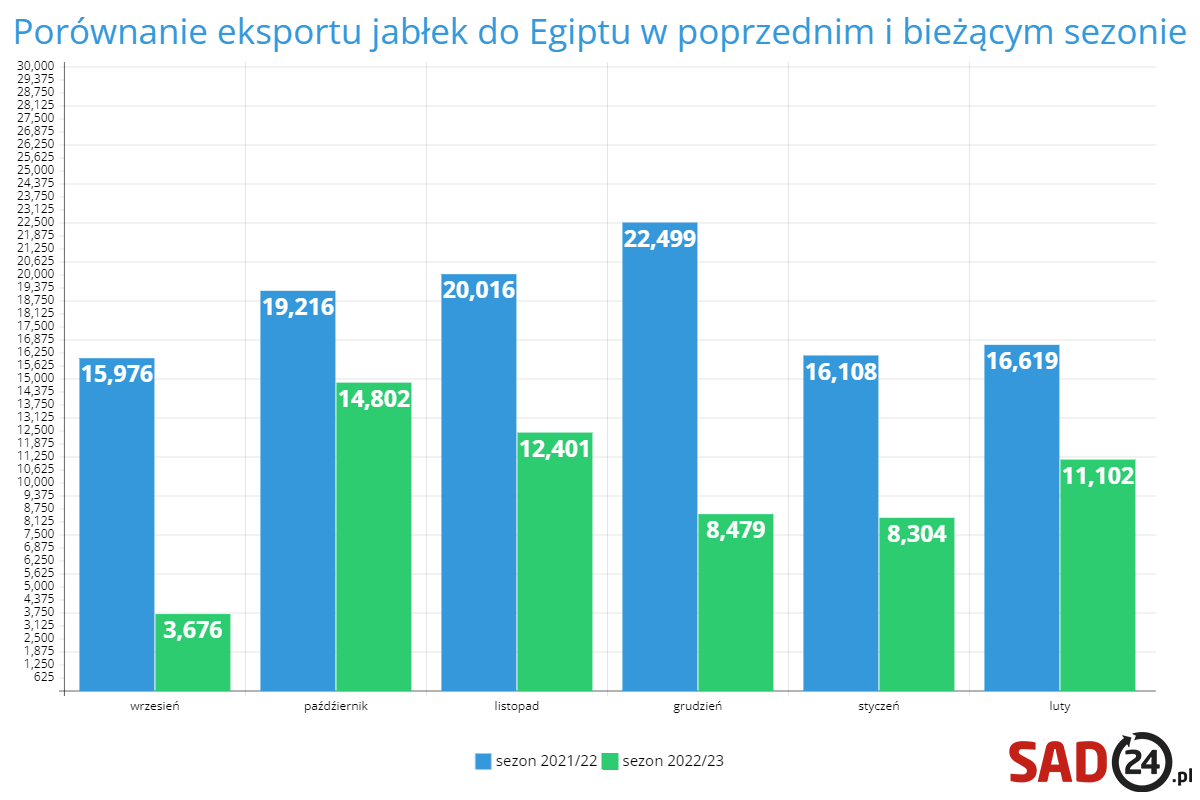Po wprowadzeniu rosyjskiego embarga, Egipt stał się największym odbiorcą polskich jabłek. Tak jest do dziś, kraj przoduje w zestawieniach wysłanych wolumenów. Jednak z powodu wojny na Ukrainie i problemów natury finansowej, w bieżącym sezonie notujemy znaczące trudności w wysyłkach do kraju.