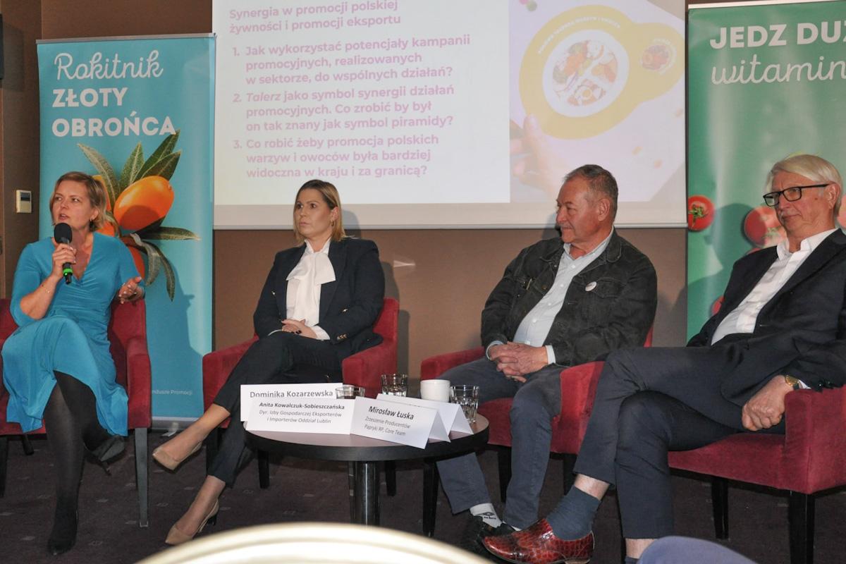 Natomiast trzeci z paneli dotyczył synergii w zakresie działań promocyjnych polskiej żywności i promocji eksportu. Poprowadził go Paweł Myziak – lider projektu „Moc Polskich Warzyw”, członek Zrzeszenia Producentów Papryki RP i zespołu ds. komunikacji roli warzyw i owoców w żywieniu człowieka Core Team. Ponadto w panelu uczestniczyli: Dominika Kozarzewska, prezes Grupy Producentów Owoców „Polskie Jagody”, Fundacja Promocji Polskiej Borówki, koordynatorka prac Jagodowego Core Team; Anita Kowalczuk-Sobieszczańska dyrektor Izby Gospodarczej Eksporterów i Importerów Oddział Lublin. Przedsiębiorca, praktyk z 20-letnim stażem. Od lat pracuje na stanowiskach dyrektorskich w firmach handlowych, usługowych, organizacjach międzynarodowych zrzeszających przedsiębiorców; Marek Marzec – właściciel Grupy EWA-BIS; oraz Mirosław Łuska – prezes Zrzeszenia Producentów Papryki RP. Jak zauważono już na wstępie do tego panelu dużym osiągnięciem jednym z prowadzonych dotychczas działań jest uznanie „talerza” jako symbolu synergii działań promocyjnych i dobrych nawyków żywieniowych. Wspomniany „talerz” staje się obecnie przystępną formą prezentacji zaleceń żywieniowych. Chodzi o to, aby konsumenci przestali traktować warzywa i owoce jak dodatek, a zaczęli jako podstawę codziennego odżywiania. Mają one stanowić połowę talerza w każdym posiłku. Drugą jego połowę powinny stanowić natomiast produkty pełnoziarniste, mięso i niskotłuszczowe produkty mleczne.