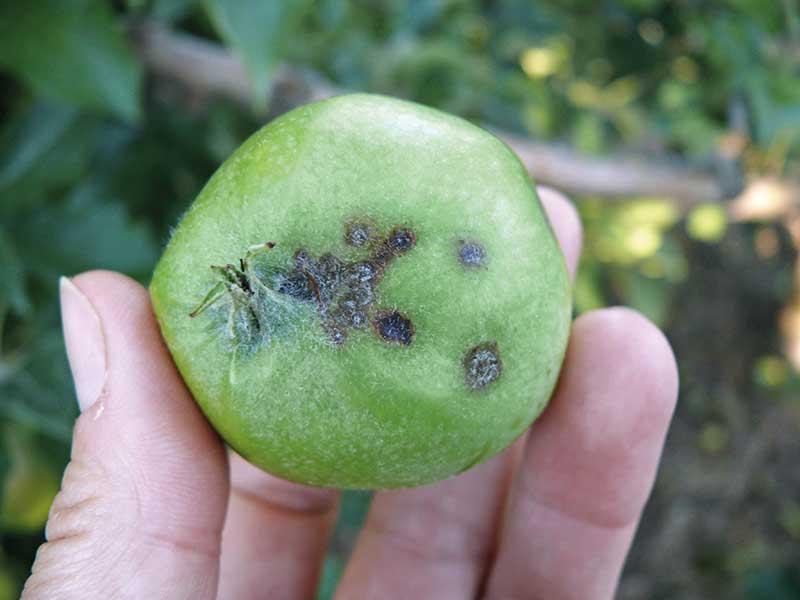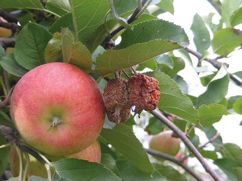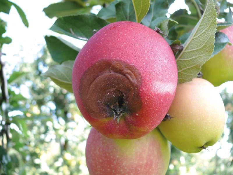 W czasie kwitnienia jabłoni w sezonie 2013 padał deszcz, zagrożenie chorobami infekującymi przez kwiaty było zatem duże. Warunki takie sprzyjały rozwojowi brunatnej zgnilizny owoców, szarej pleśni i suchej zgnilizny przykielichowej, ale również gorzkiej zgnilizny, zgnilizny gniazda nasiennego, czy zarazy ogniowej, która w tym roku wystąpiła w znacznym nasileniu. W przypadkach, gdzie z różnych przyczyn ochrona przed chorobami była niewystarczająca, podczas przechowywania mogą wystąpić procesy gnilne. Wszelkie uszkodzenia skórki (grad, owady) mogą to zjawisko nasilić.