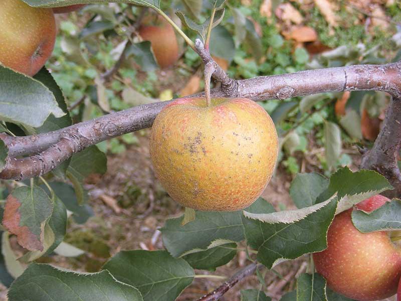 Czynniki pogodowe w sezonie 2013 sprzyjały powstawaniu ordzawień na jabłkach (fot. 10). Były one wynikiem gwałtownych ociepleń po dłuższym okresie ochłodzenia, zimnych lub bardzo ciepłych nocy obfitujących w rosę lub stresu wywołanego suszą. Inną przyczyną ich powstawania mogło też być niewłaściwe stosowanie zabiegów chemicznych. Częste opady deszczu wymuszały powtarzanie zabiegów i stosownie mieszanin. Ich użycie, choć w celu ochrony i poprawy jakości owoców przyniosły odwrotny skutek, czego efektem było pojawienie się ordzawień na owocach, w trakcie ich wzrostu. Podobne objawy na jabłkach mogły być także spowodowane przez mączniaka prawdziwego jabłoni, który w sezonie 2013 występował w dużym nasileniu (na liściach i młodych pędach). Mikrouszkodzenia skórki na jabłkach mogą być także efektem żerowania szkodników o kłująco-ssącym aparacie gębowym (przędziorki, szpeciele, mszyce). Takie objawy na owocach wywołuje zazwyczaj szereg różnych czynników, niekoniecznie tych samych we wszystkich przypadkach. Najbardziej wrażliwe na uszkodzenia skórki są zawiązki i młode owoce, czyli w okresie tuż po kwitnieniu, w momencie zawiązywania i początkach ich wzrostu. Ograniczająco na pojawienie się ordzawień działają preparaty zawierające gibereliny (np. Novagib 010 SL, czy Gibb Plus 11 SL). W innych krajach stosowane są też preparaty zawierające bor i siarkę lub kaolin, ale również sproszkowane preparaty okrzemkowe tzw. iłołupki, czy przebadany w Polsce Bioczos, zwłaszcza w mieszaninie z mydłem ogrodniczym. Bardzo skuteczne są też preparaty zawierające algi.