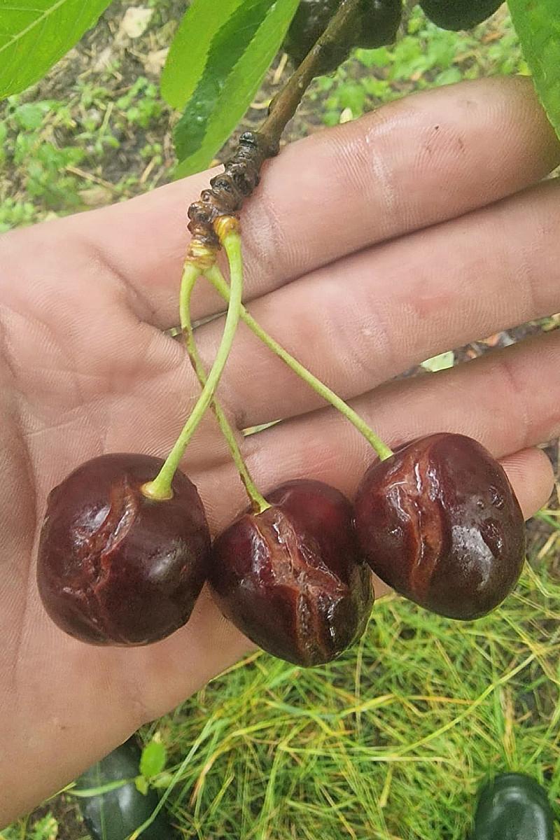 Wtorek i środa były dla zagłębia grójeckiego rekordowe, jeśli chodzi o sumę opadów. Lokalnie przez dwie doby spadło nawet 100 litrów wody na każdy metr kwadratowy. Deszcz był długo wyczekiwany, jednak tak intensywne opady sprawiły, że czereśnie zaczęły pękać już wczoraj. Załączone niżej zdjęcie odmiany Kordia nasz czytelnik wykonał wczoraj po południu.