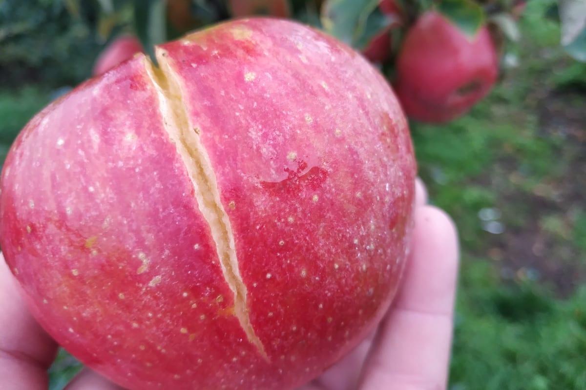 Zbiory jabłek przebiegają w towarzystwie deszczowej aury. W kwaterach Szampiona można znaleźć już spękane jabłka. Jest to objaw przejrzewania jabłek, a także utrzymującej się wilgoci.