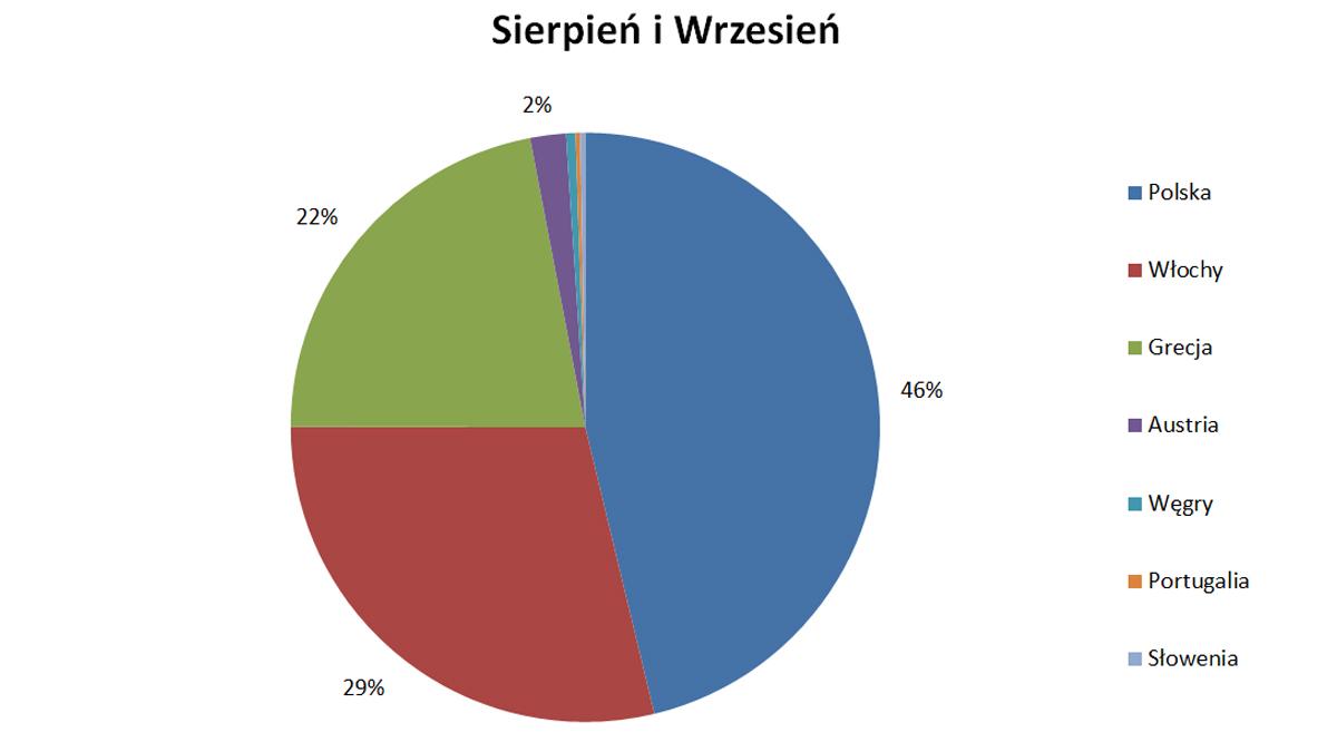 Na rynek egipski znaczące ilości jabłek eksportują również Włosi i Grecy. Niemniej w sierpniu i wrześniu byliśmy największym dostawcą na tym rynku z wynikiem 27 813 ton. Znaczące ilości jabłek wyeksportowali również Włosi - 17 329 ton oraz Grecy - 13 205 ton.