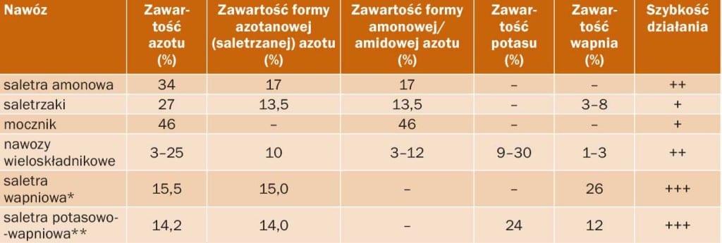 Jakie zatem nawozy azotowe wybrać i w jakim momencie je zastosować, aby zabieg był jak najbardziej skuteczny? Przeanalizujmy rozwiązania, które są źródłem azotu na rynku (tabela).