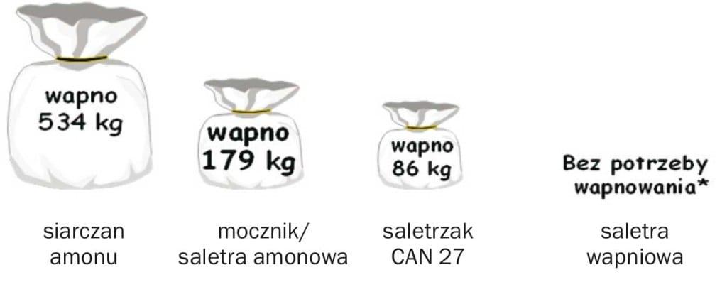 * 100 kg N w postaci saletry wapniowej na ha odpowiada zastosowaniu 143 kg CaCO3