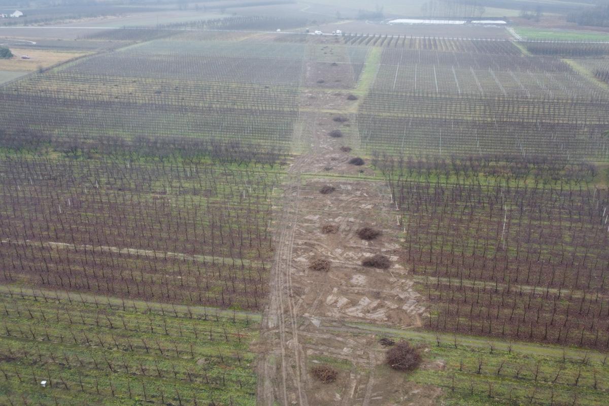 Jak relacjonują nam sadownicy, wykonawcy bardzo ostrożnie "obchodzą się" z sadami. W miejscu gdzie inwestycja przecina rzędy montowane są nowe kotwy, a drut sadowniczy jest do nich mocowany. Wobec czego mamy 30 metrową przerwę w rzędzie. Będzie to niestety bardzo kłopotliwe podczas wiosennych zabiegów.