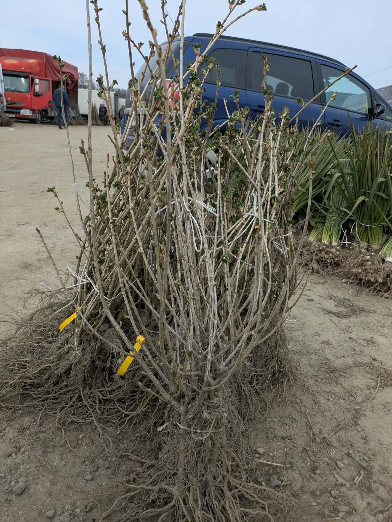 Na targowisku można dziś znaleźć sadzonki porzeczek czarnych i czerwonych, a także agrestu, malin i borówek. Sadzonek truskawek jest bardzo mało. To nie jest więc targ zdominowany przez materiał jagodowy, ale kupujący nadal mają z czego wybierać, zwłaszcza jeśli szukają porzeczek.