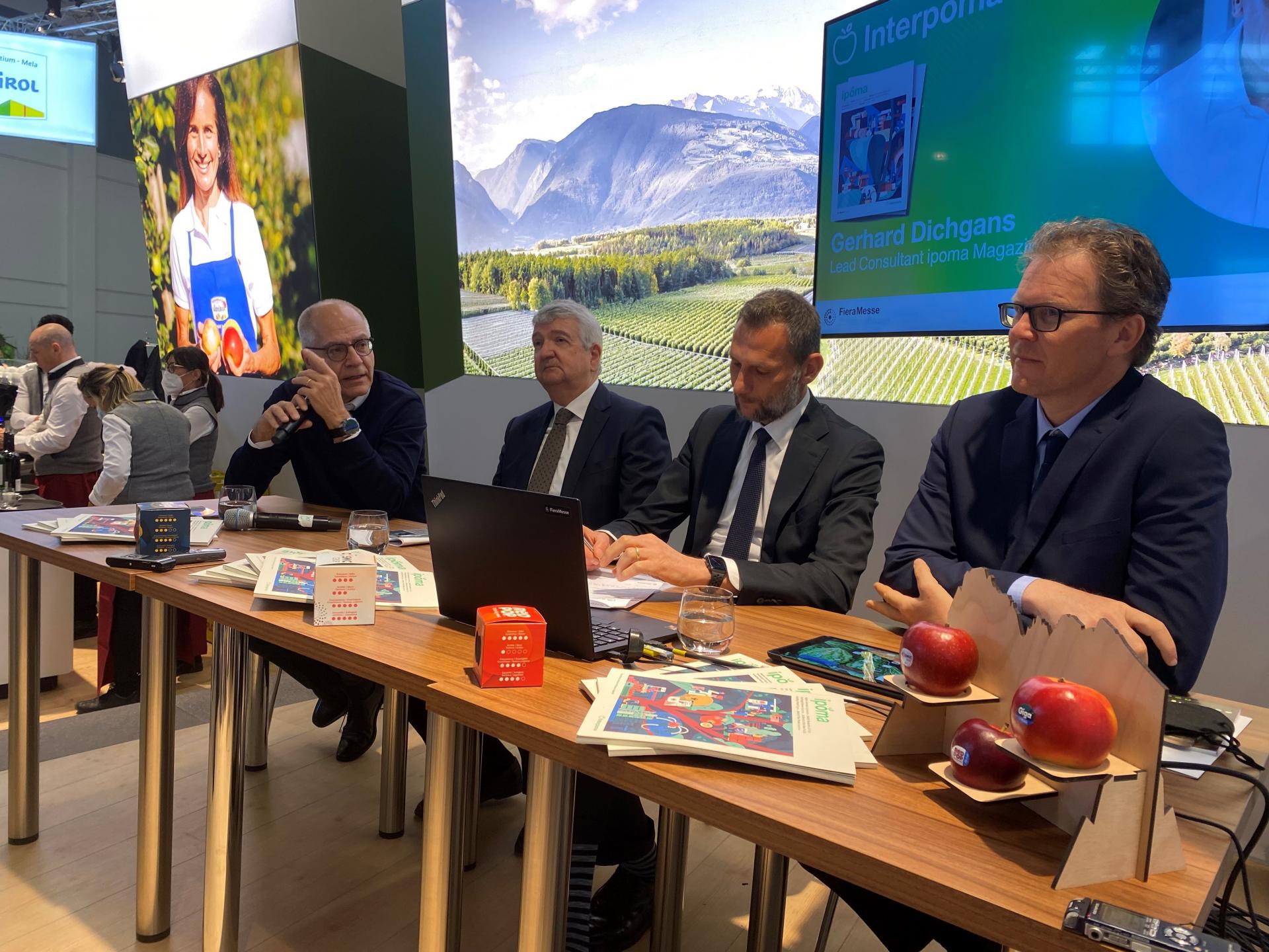 Już wiadomo, że Interpoma odbędzie się 17-19 listopada br. w Bolzano (Włochy) i będzie to wielki powrót wydarzenia stacjonarnego po przerwie wywołanej pandemią COVID-19. Ostatnia konferencja odbyła się on-line i cieszyła się dużą popularnością stąd organizatorzy tegorocznej edycji „na żywo” (fot. 1) liczą na bardzo wysoką frekwencję zarówno, jeśli chodzi o wystawców, jak i odwiedzających. Kwietniowe targi Fruit Logistica (5-7.04.2022 r.) były okazją do zaprezentowania programu Interpomy szerokiemu gronu dziennikarzy branżowych z całego świata (fot. 2) podczas konferencji prasowej.