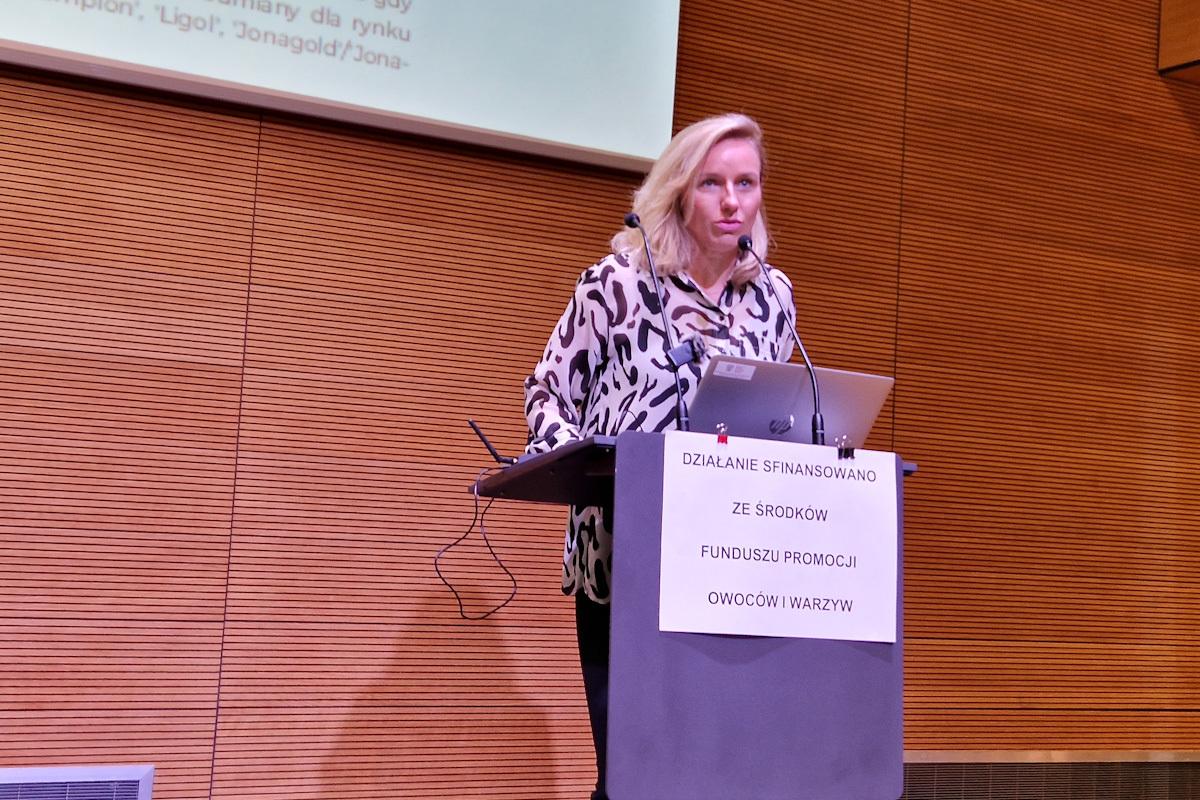 Spotkanie rozpoczęło się od wykładu dr hab. Bożeny Noseckiej, która opowiedziała o rozdysponowaniu produkcji jabłek w Polsce. Jak zauważyła w swojej prezentacji, sezon 2022/23 jest wyjątkowo rentowny z punktu widzenia branży przetwórczej. Jeśli chodzi o jabłka deserowe to ekspertka podkreślała, że nadal nie udało nam się zastąpić w eksporcie rynku rosyjskiego. Niemniej, coraz większe wysyłki na dalekie rynki mogą budzić pewien optymizm.