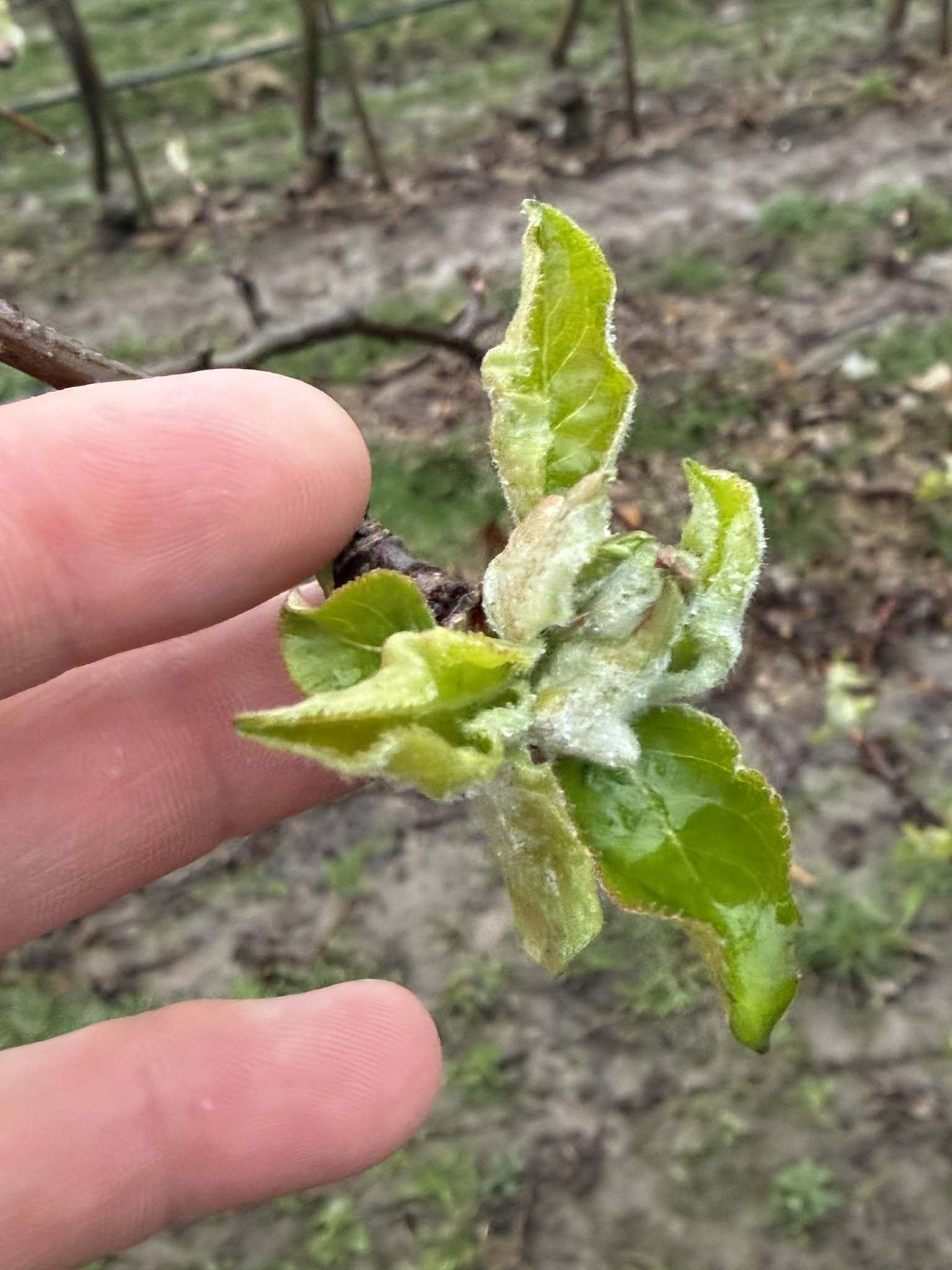W tym rejonie spadło więcej deszczu niż w środkowej Polsce, a tkanka liściowa jest już bardziej rozwinięta i wymaga ochrony. Dobrze widać to choćby na Jonagoldach.