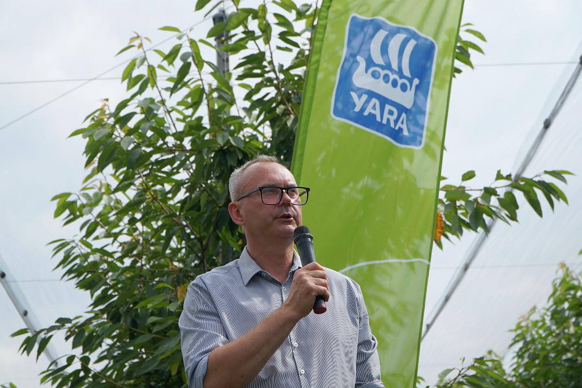 Na trzeciej stacji sadownicy mogli usłyszeć więcej o nawożeniu czereśni od specjalistów Yara Poland. Dr Andrzej Grenda skupił się na nawożeniu czereśni po zbiorach. Dużo uwagi poświęcił azotowi. Jeśli dziś sprawimy, że drzewo skumuluje go w drewnie, wiosną przyszłego roku „sięgnie” po te zapasy w pierwszej kolejności. W tym miejscu również nie brakowało pytań o rodzaje produktów wapniowych i krzemowych, które najlepiej sprawdzą się w profilaktyce przeciwko pękaniu owoców.